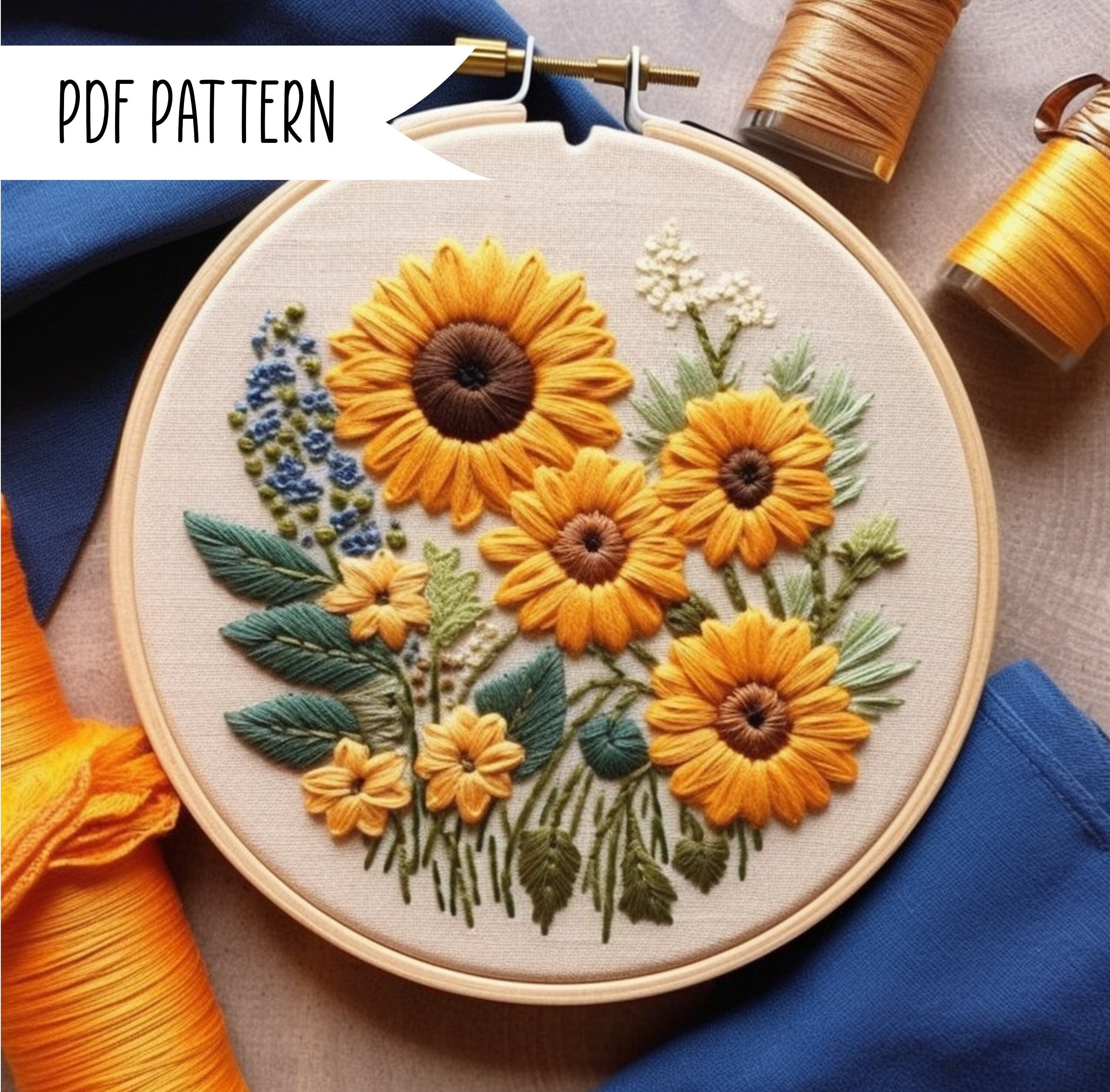 Sunflower Fun Embroidery Pattern, Sunflower Embroidery Pattern, Emb...