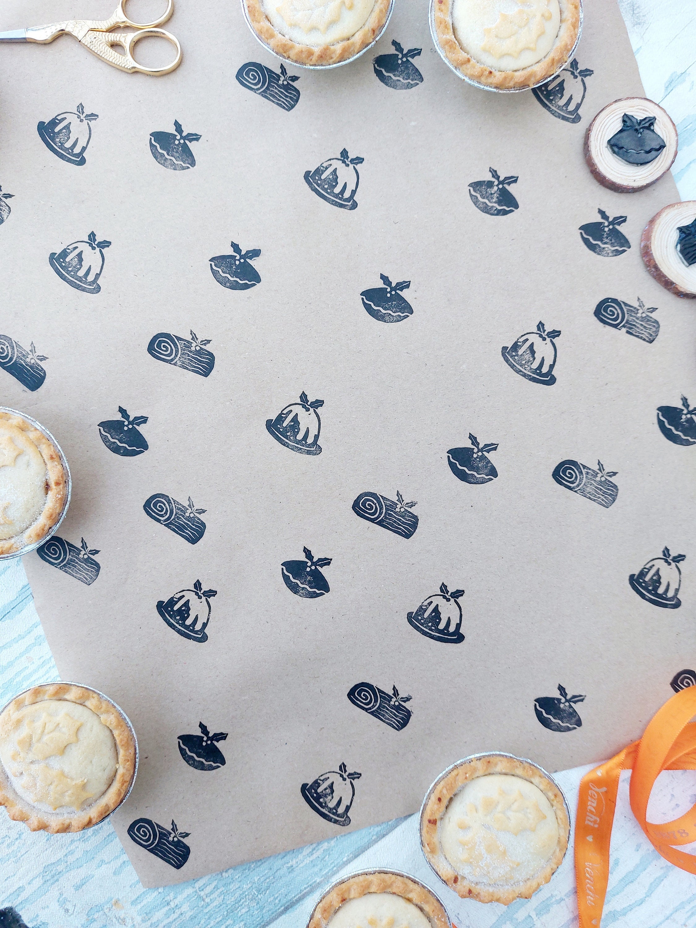 These traditional Christmas dessert ink stamps are hand carved from soft cut linoleum. It has been s...