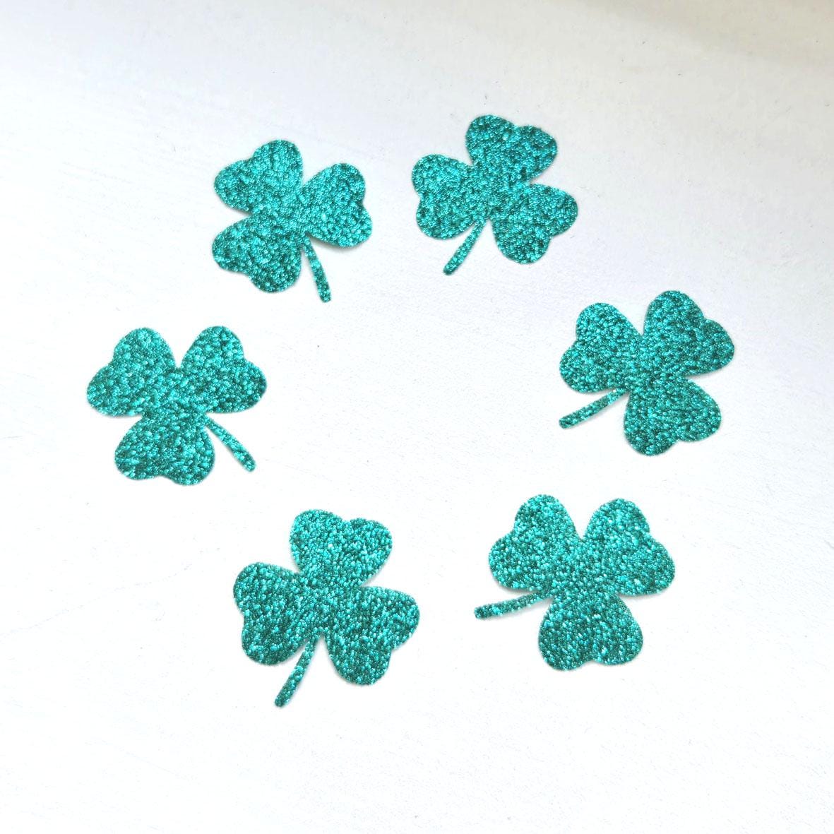 6 pcs green glitter shamrock St Patricks day iron on tshirt transfe...