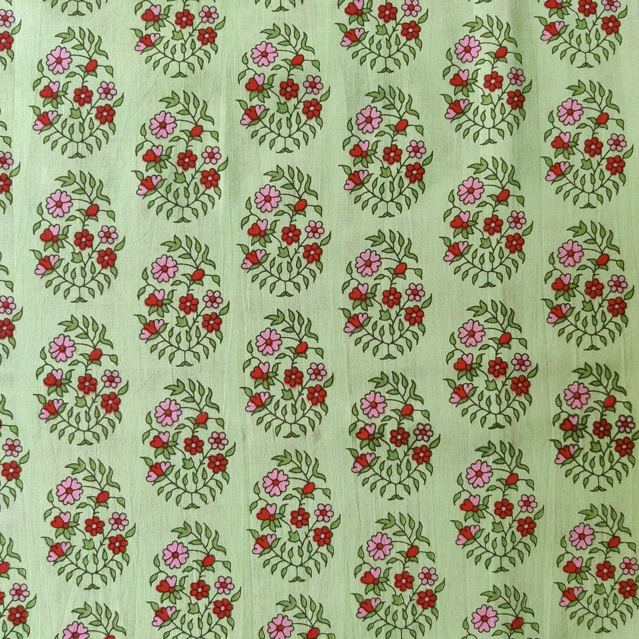 Jaipur cotton, cotton by the yard, Indian block print, pistachio gr...