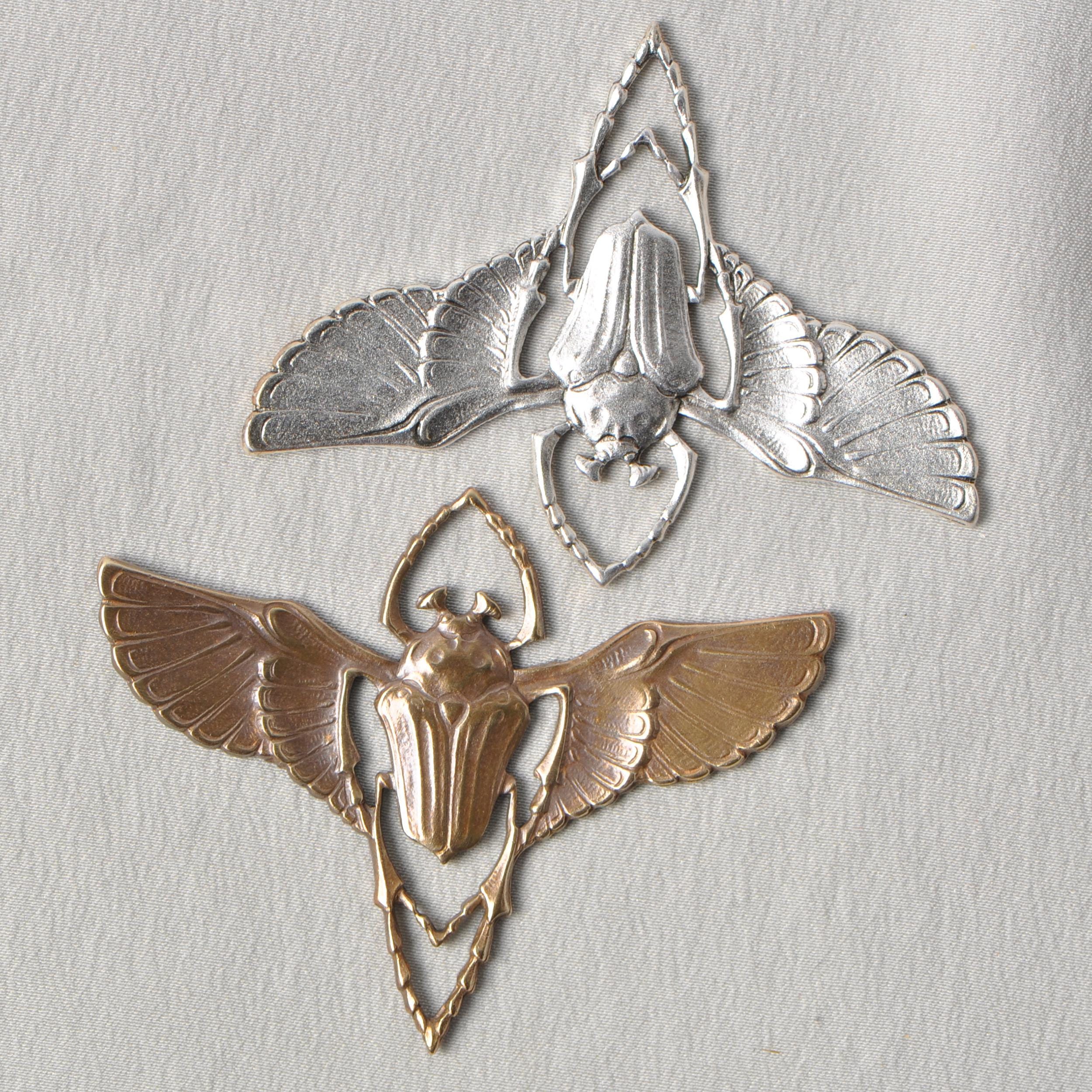 * Brass die casting / stamping * Art Nouveau Style Beetle * Choose from sterling silver plated or ha...