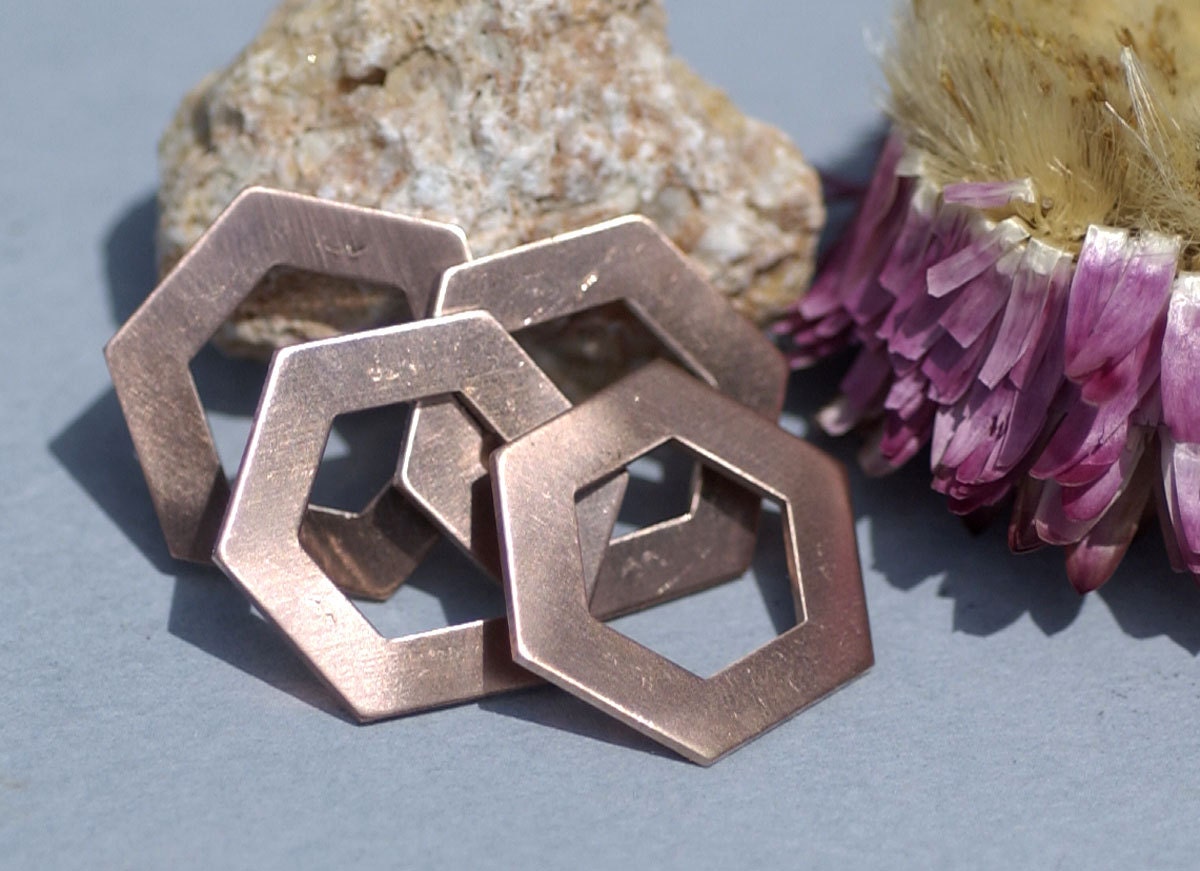 Copper Hexagon 20g 20mm Blanks Cutout for Enameling Stamping Textur...
