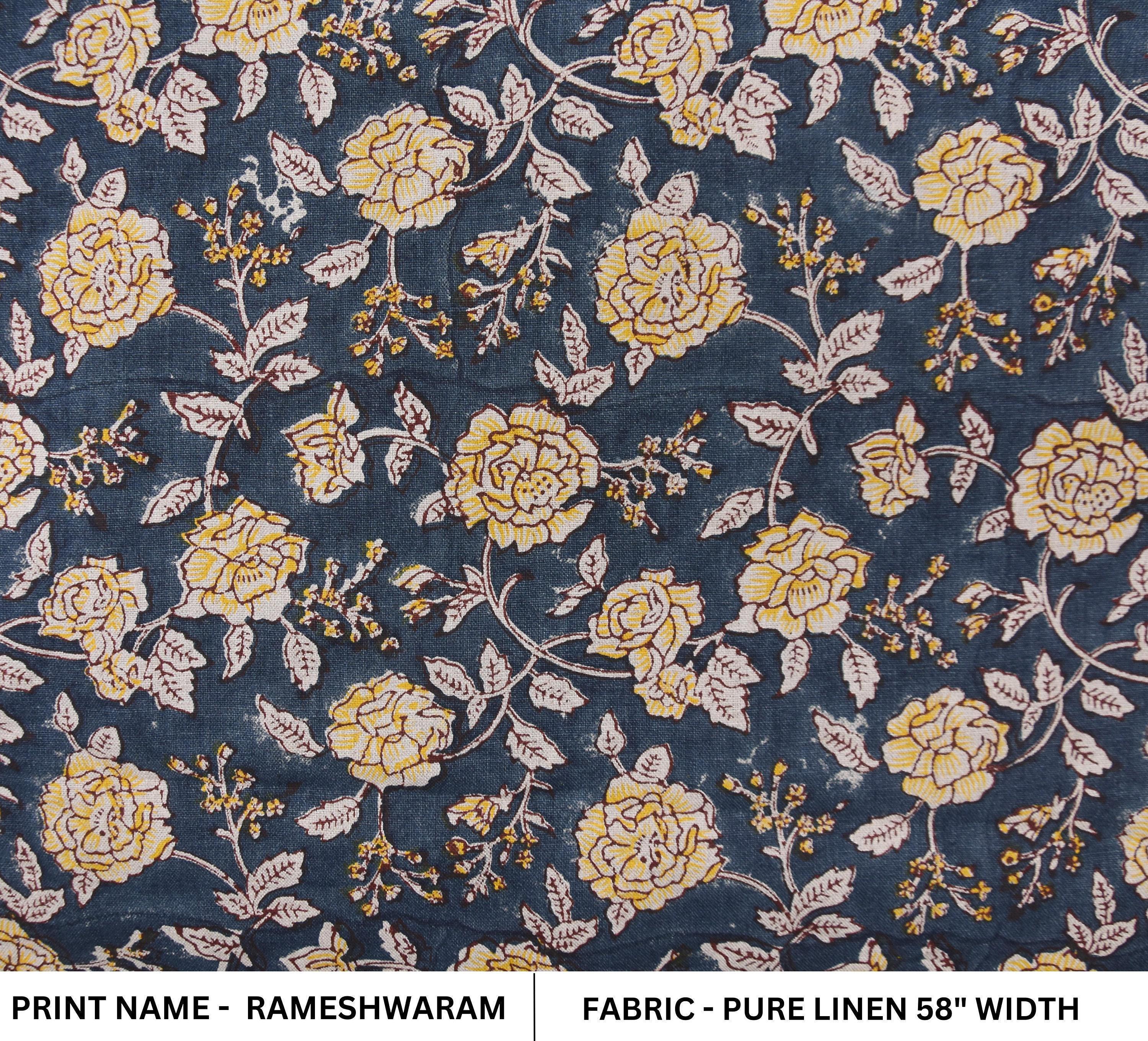 "Block print thick linen 58\" wide, hand block linen for ...