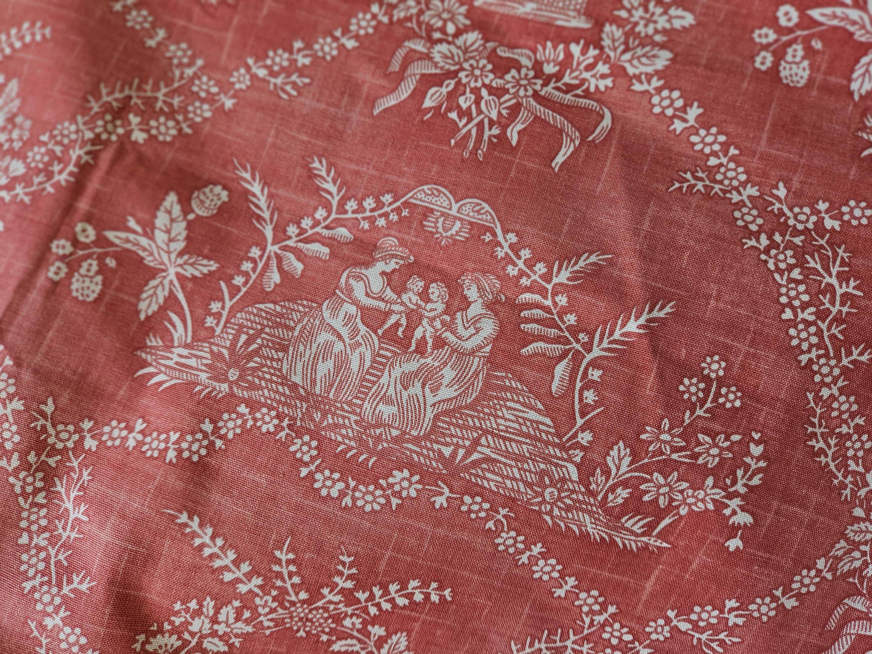 Gorgeous Vintage French Toile de Jouy Peach & White Cotton Fabr...