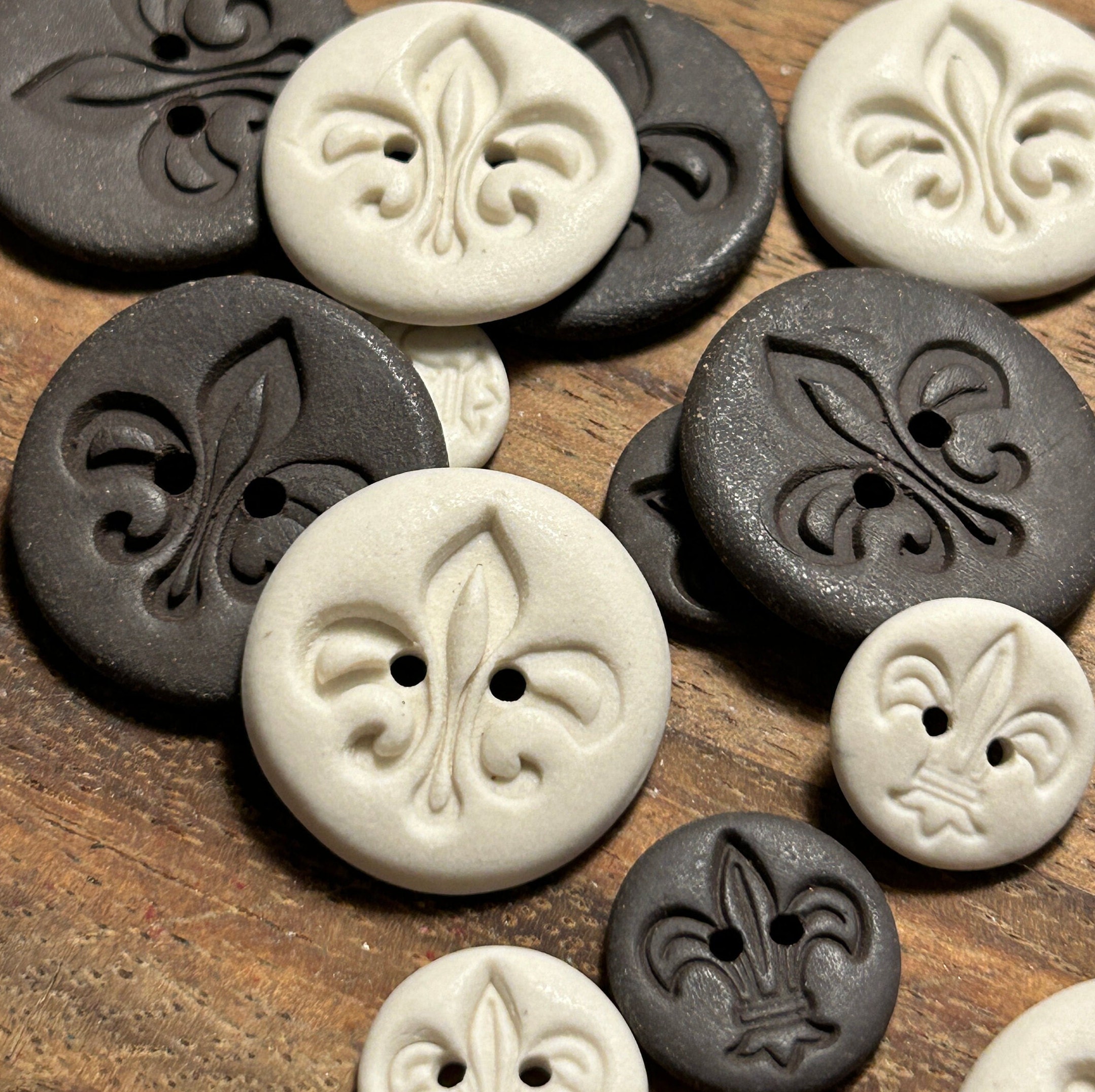 Fleur de Lis Buttons -Choose Black Clay or Porcelain White Pottery ...