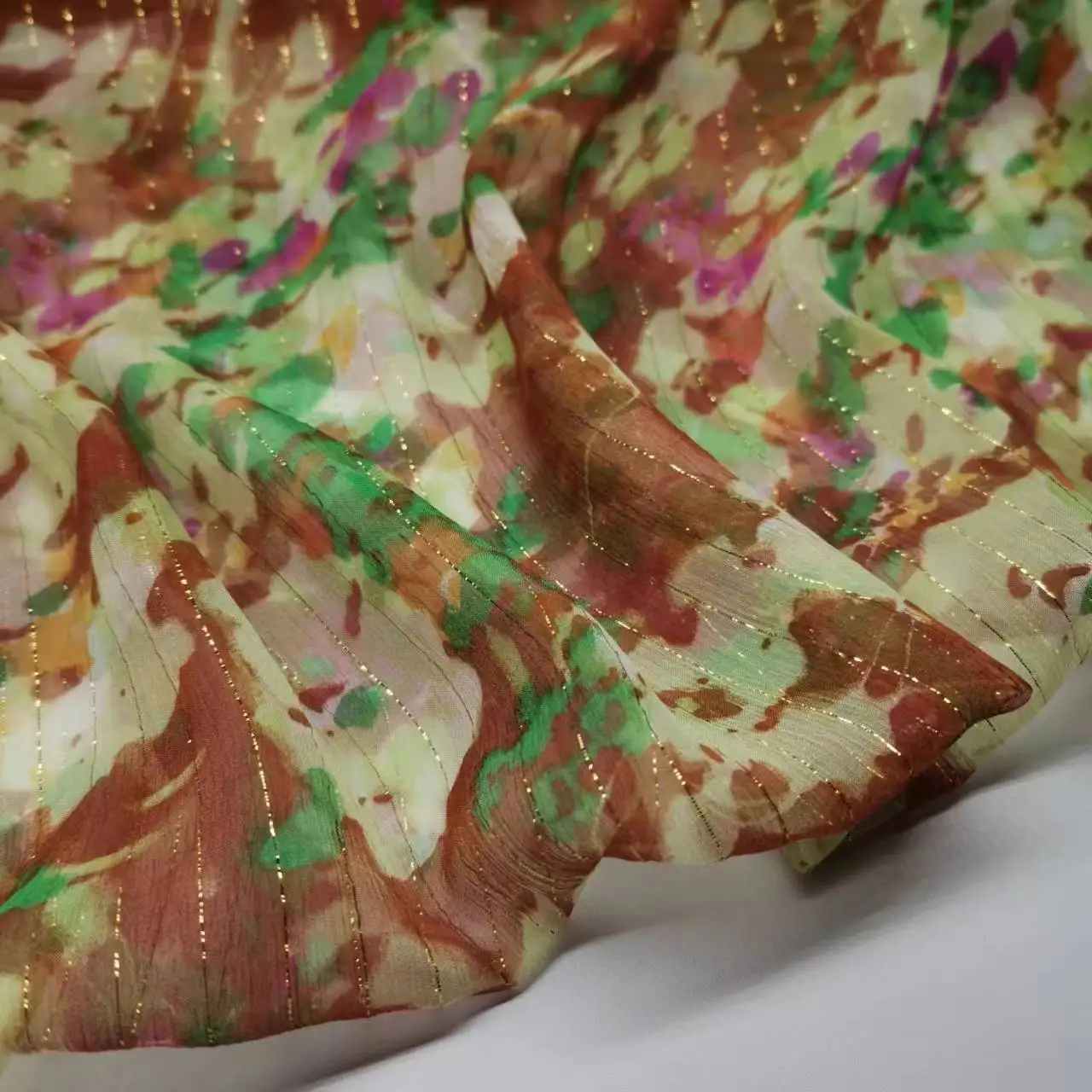 Metal Silk Fabric Mulberry Silk Lurex Brocade 138cm Width Soft Chiffon for Dress Scarf Material
