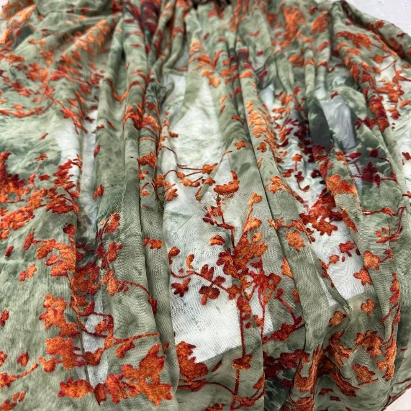1/3/5yards Green Color Brocade Jacquard Burnout Velour Tulle Fabrics Saree Dirac Lace Flocking Mesh ...
