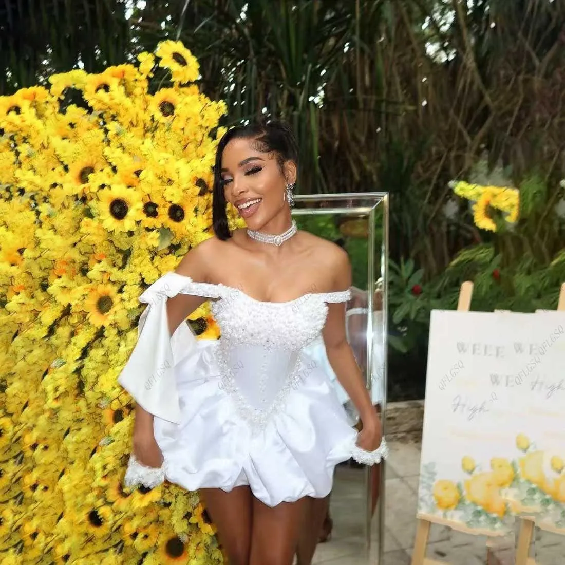 Chic Sleeveless Folds Prom Dresses Corset Bustier Bodycon A Line Prom Dress Mini Draped Bow Short Pa...