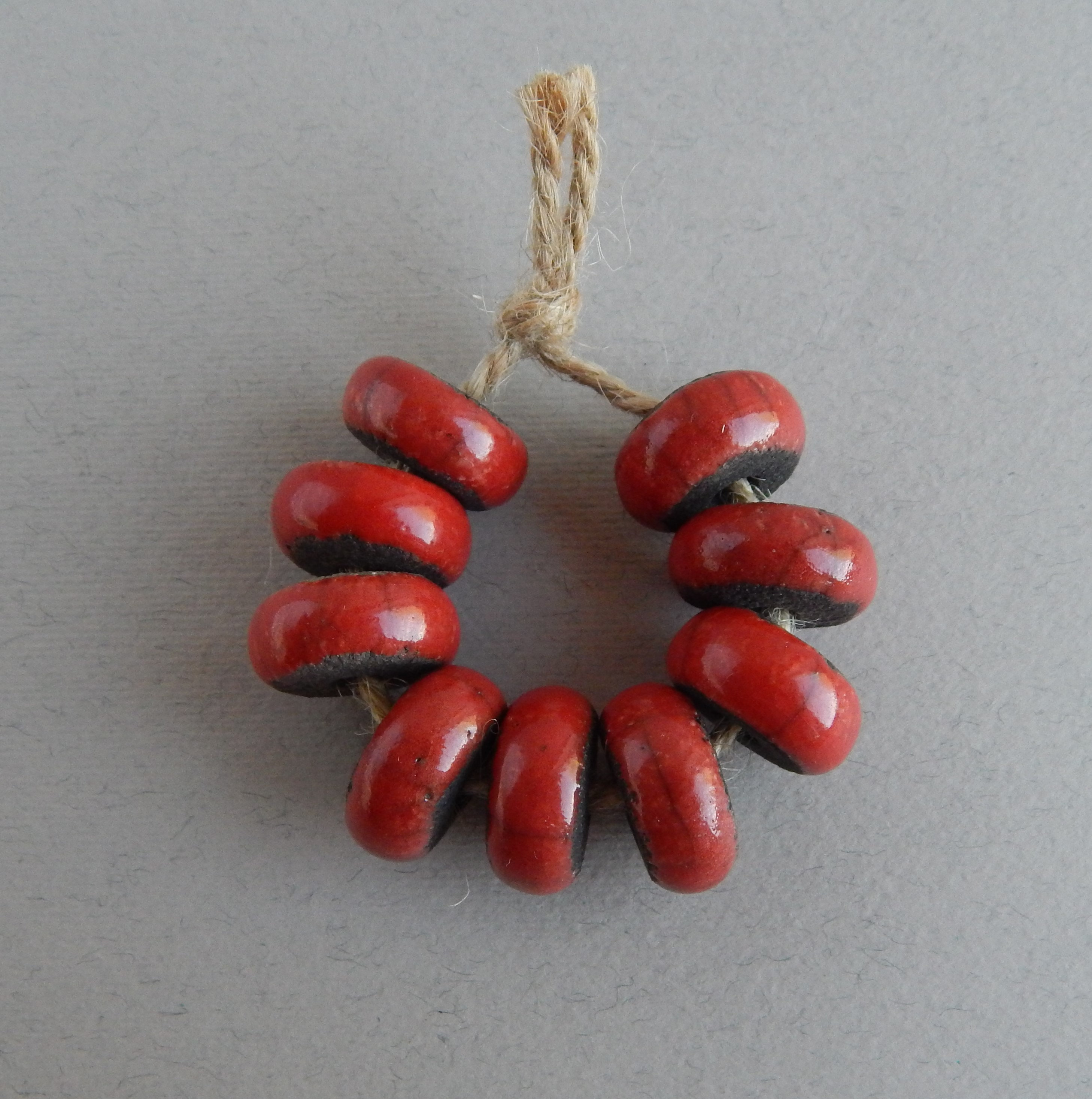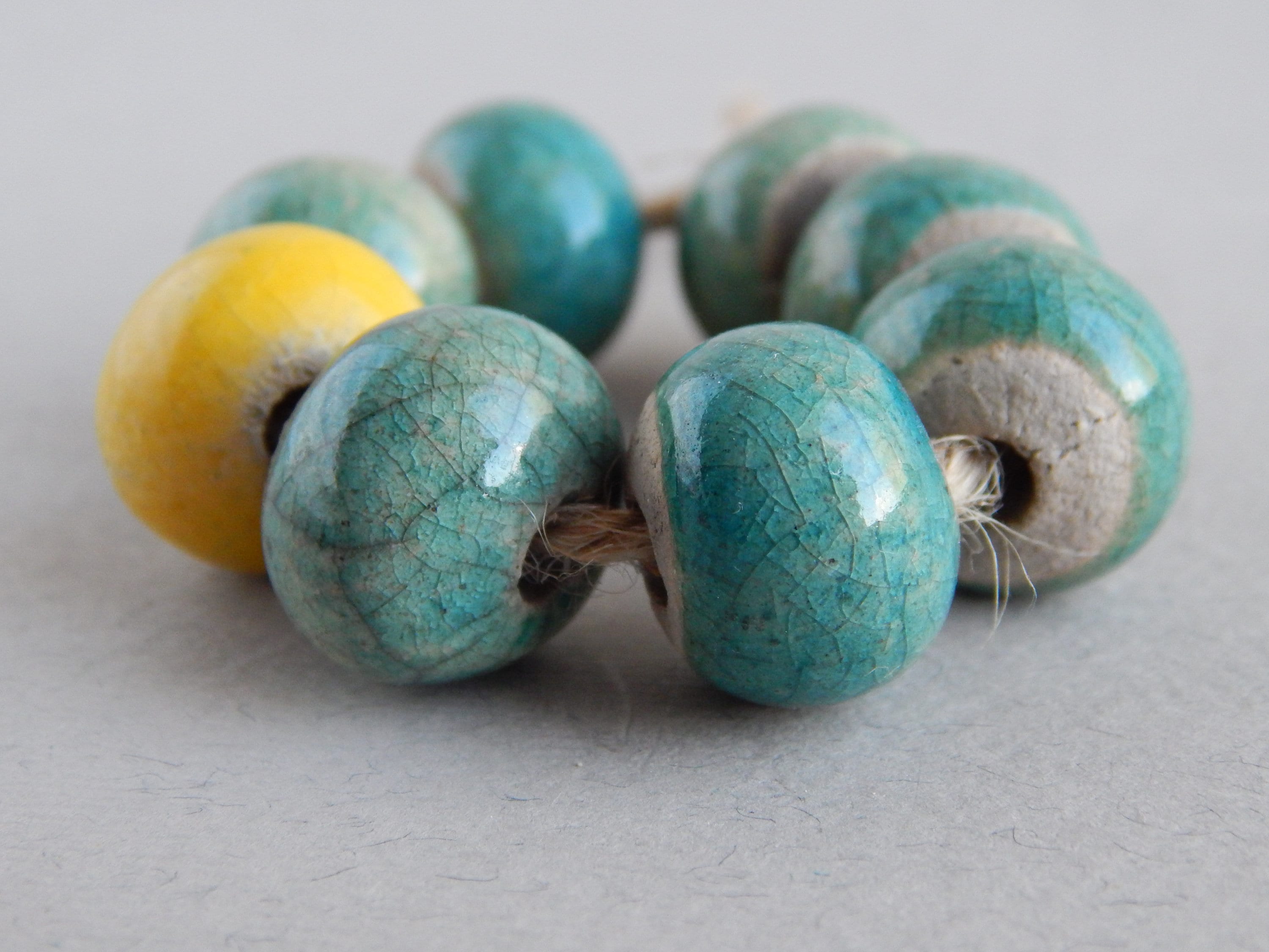 A set of 5 large ceramic beads, made using the raku technique. Fired at 900oC, then glazed and fired...