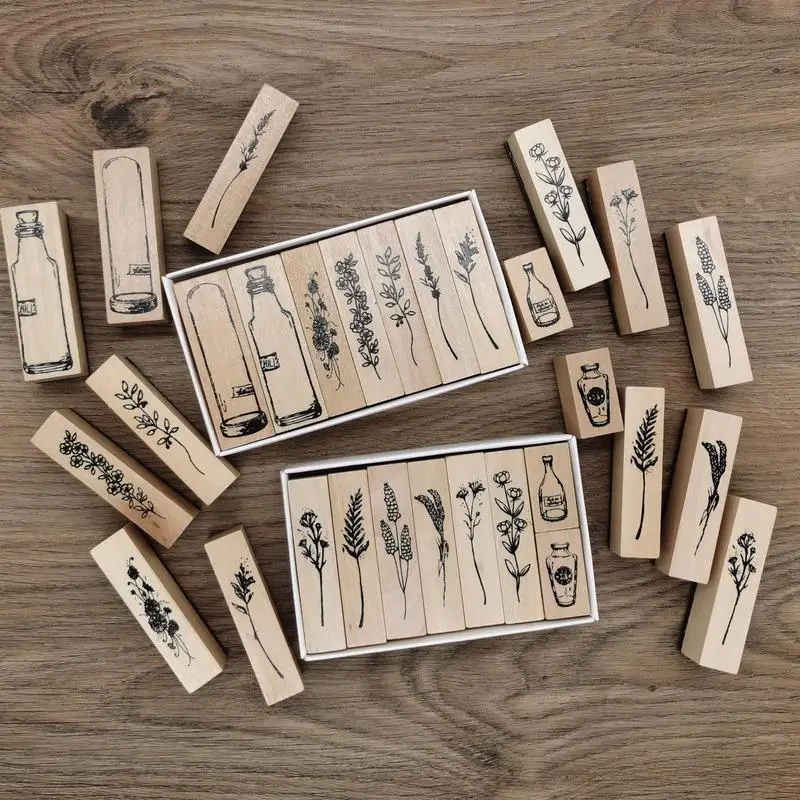 Vintage Plants in A Bottle Decoration Stamp Wooden Rubber Stamps Se...