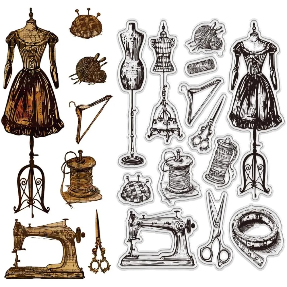 Sewing Themed Clear Stamps Sewing Model Rubber Stamps Vintage Sewin...