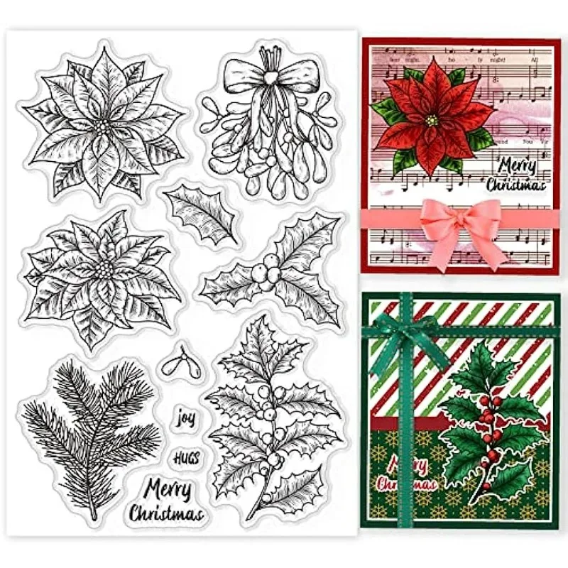 Christmas Winter Plant Clear Stamp Poinsettia Mistletoe Transparent Silicone Stamp Holly Pine Branch...