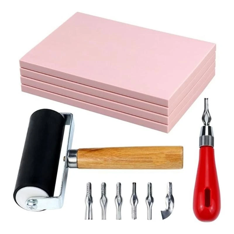 Carve Stamp Making Kits Rubber Stamp Making Kits with Stamp Block Rubber Brayer Roller for Carving P...