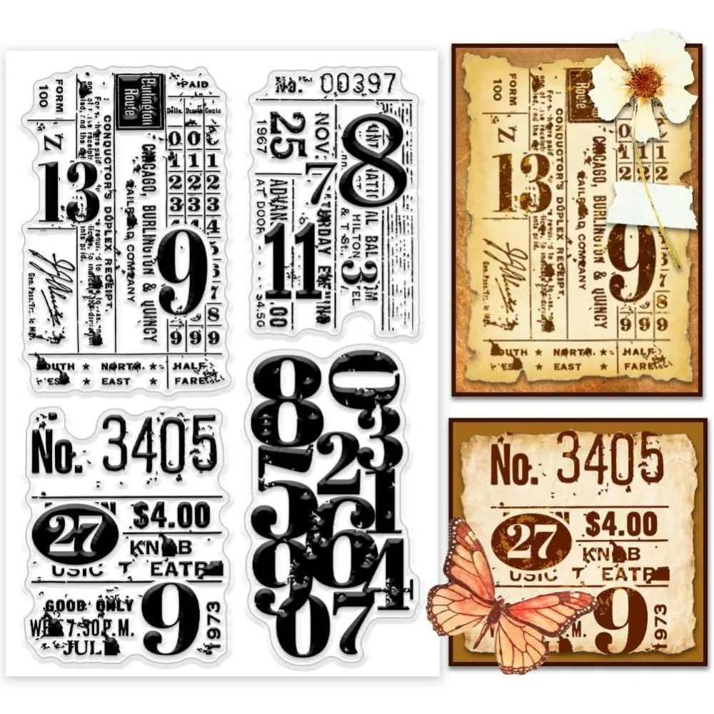 Retro Numbers Clear Stamp for Card Making Background Board Rubber Stamp Classic Stamp Vintage Transp...