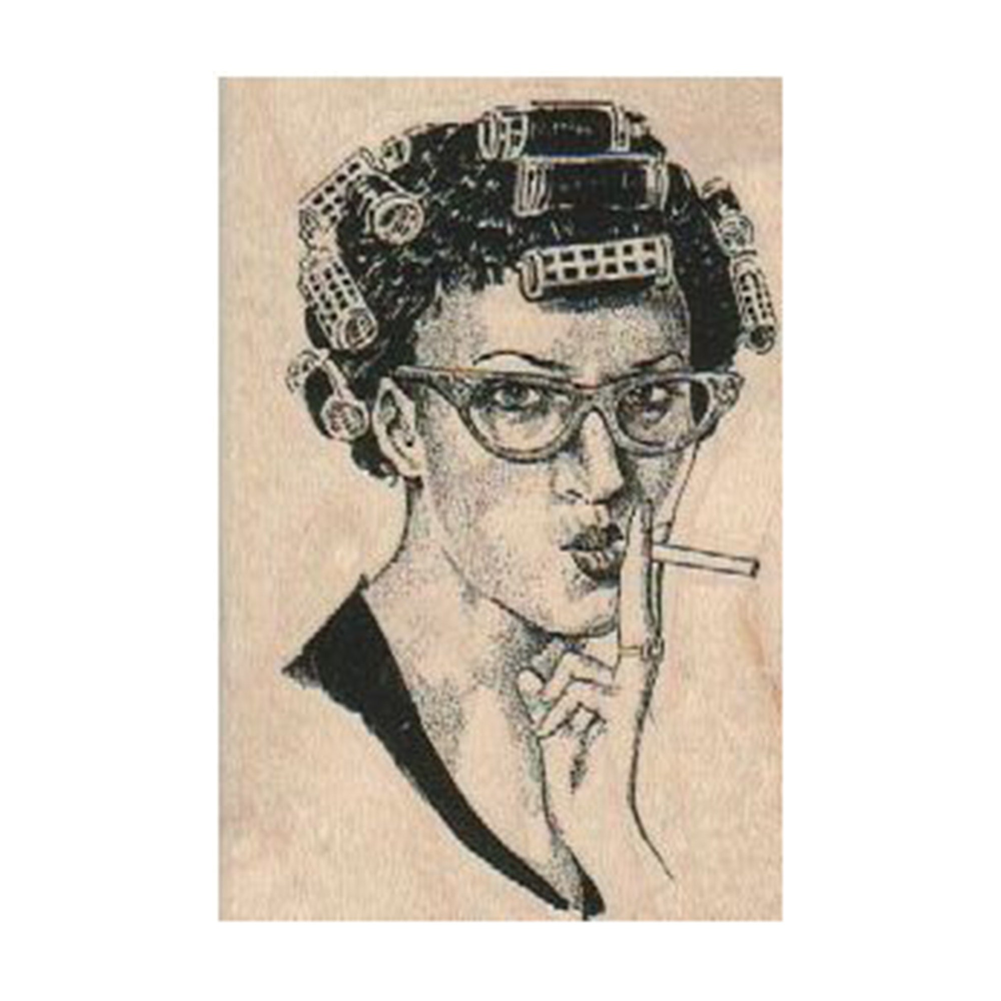 Smoking Woman in Curlers RUBBER STAMP, Smoking Rubber Stamp, Lady R...