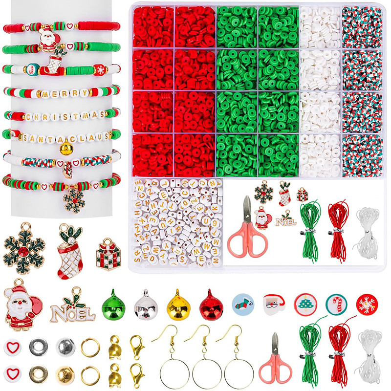 • Christmas Beads for Jewelry Making Charms Clay Beads for Bracelet N...
