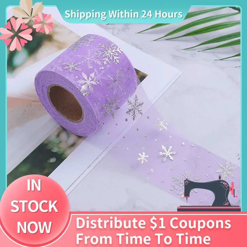 Wholesale Christmas 25 Yard Birthday Bouquet Snowflake Tulle Rainbow Silver Snow Star DIY Handmade W...