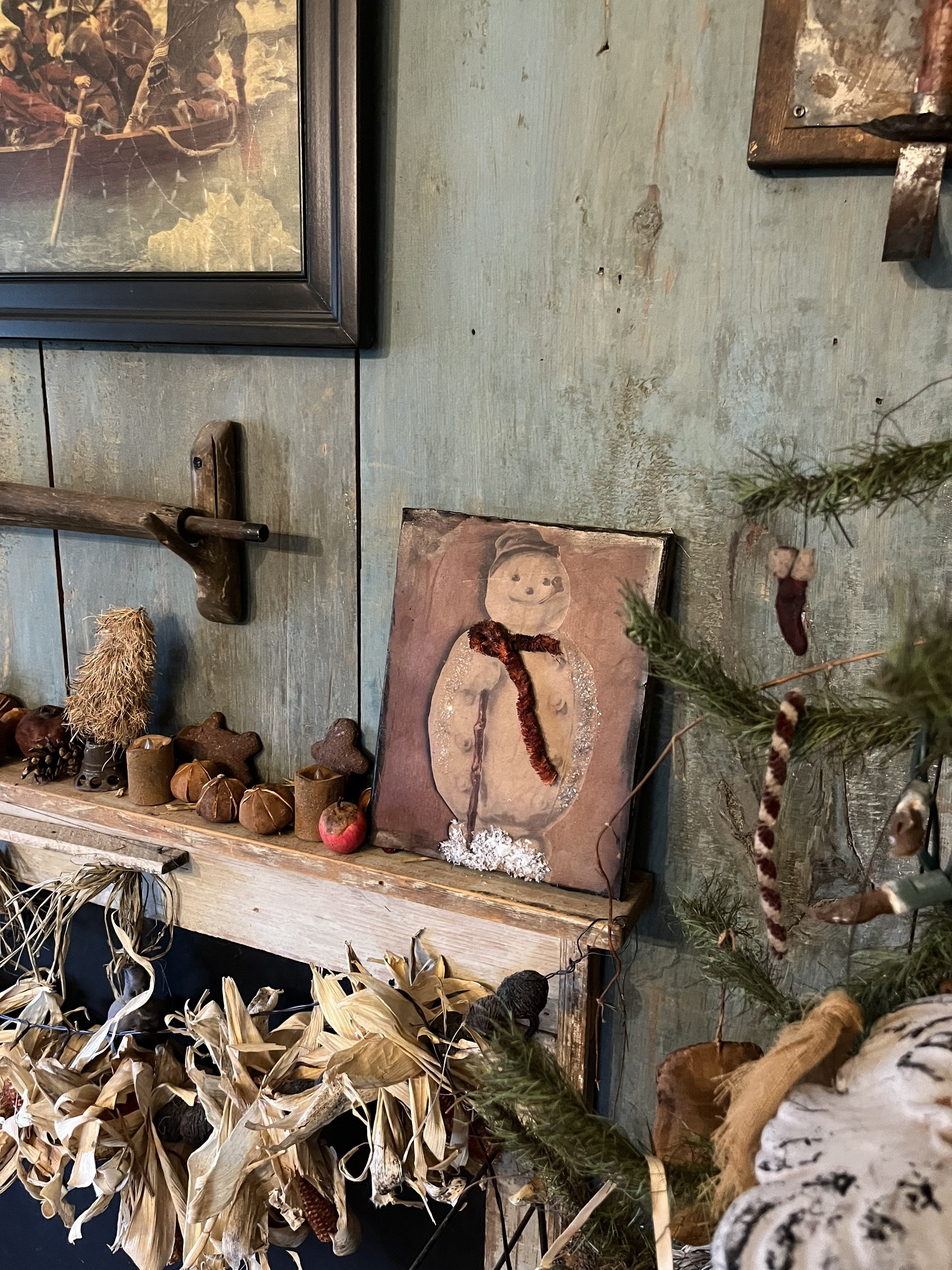 Primitive early look snowman~Christmas pictures~colonial~early look...