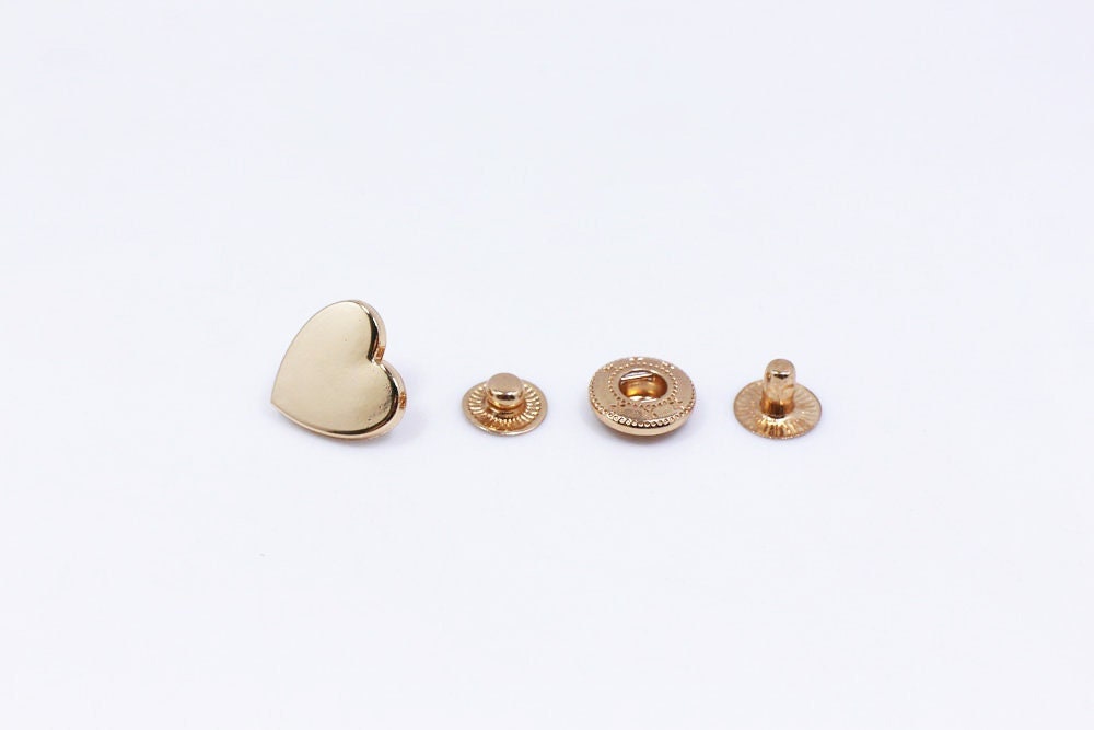 Golden Heart Metal Snap Buttons, Heart Shaped Snaps, Press Stud, Sn...