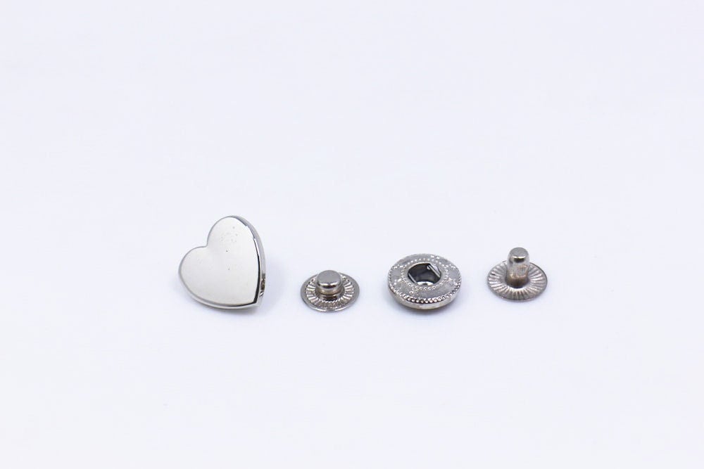 Silver Color Heart Shaped Metal Snap Buttons (Snap Model 633) Each set includes 1 cap, 1 socket, 1 s...