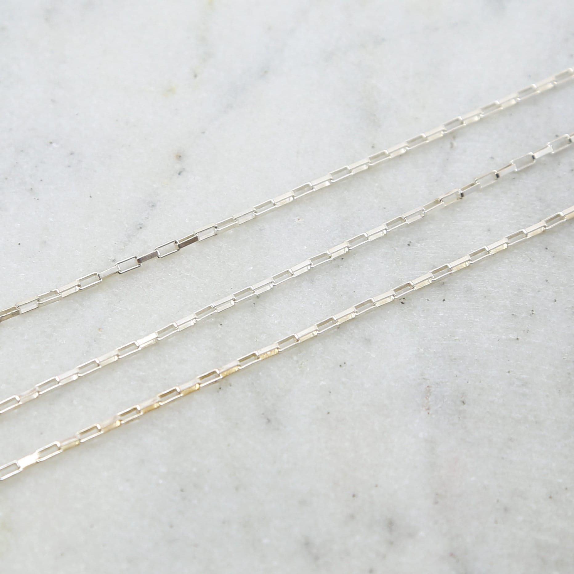 2.8mm 1.3mm Dainty Faceted Elongated Flat Rectangle Cable Chain Box Chain -Has a thick sturdy feelin...