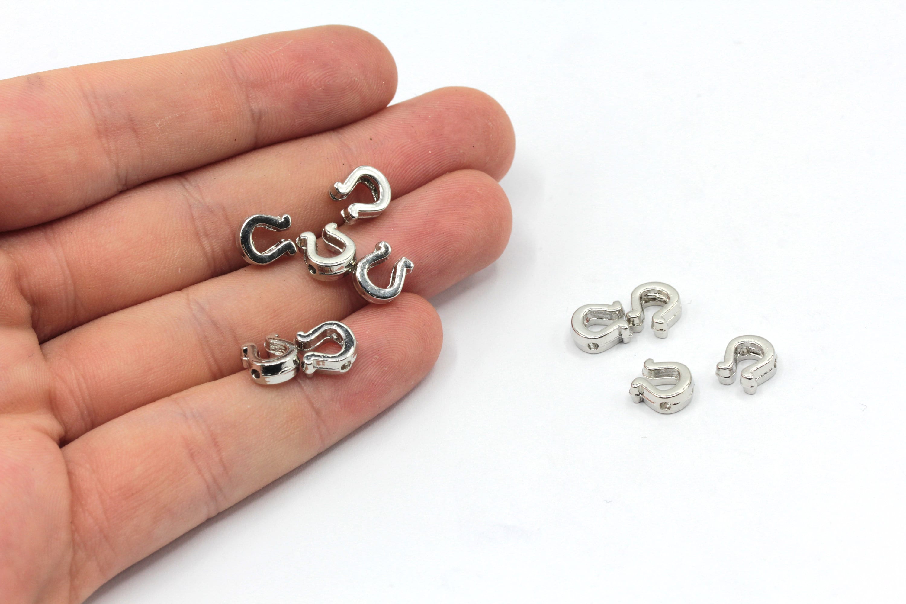 7x8mm Rhodium Horseshoe Beads, Good Lucky Charm, Horseshoe Spacer Beads, Horseshoe Bracelet Charm, R...