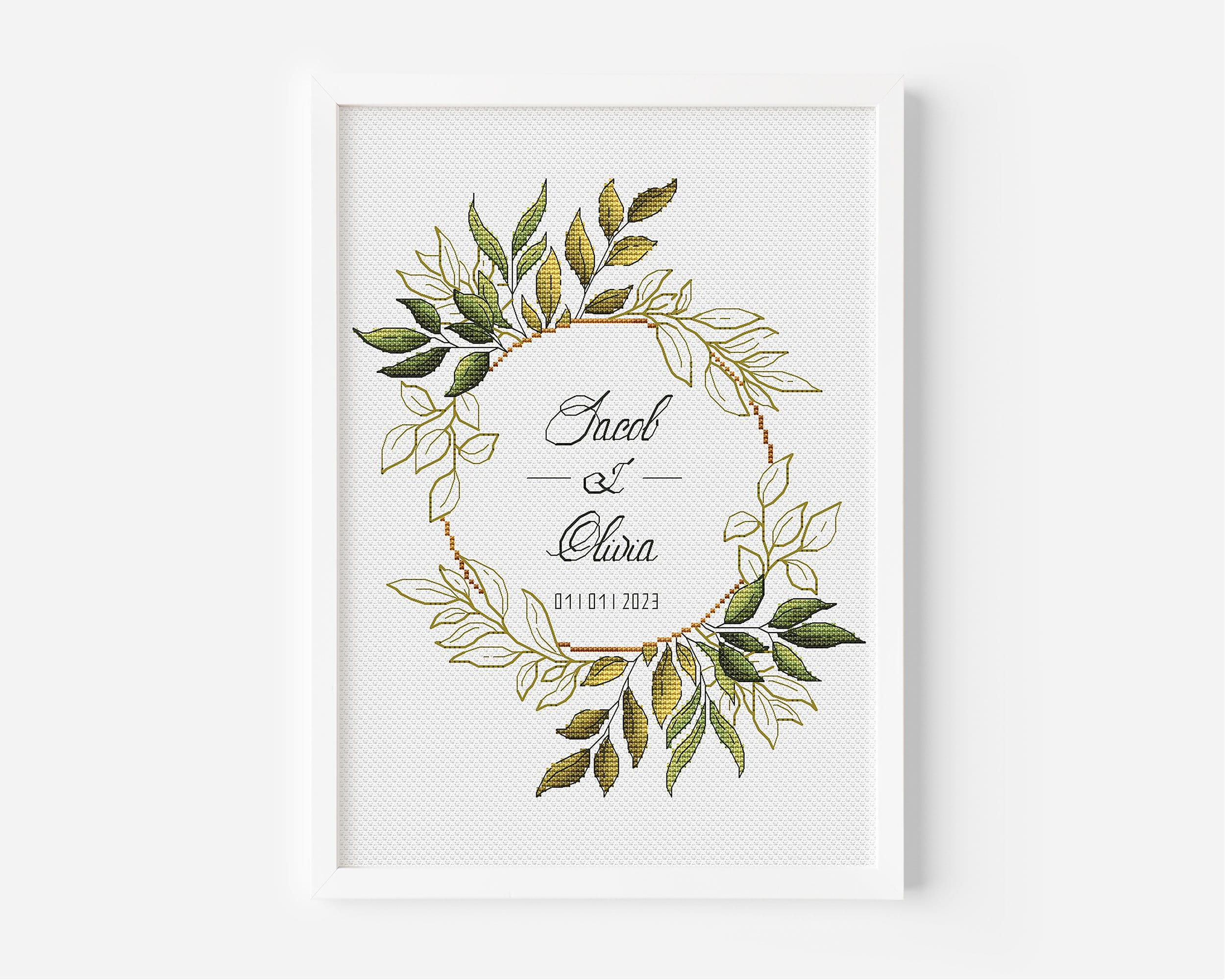 Greenery Wedding Cross Stitch Pattern Template, Modern Wedding Cros...
