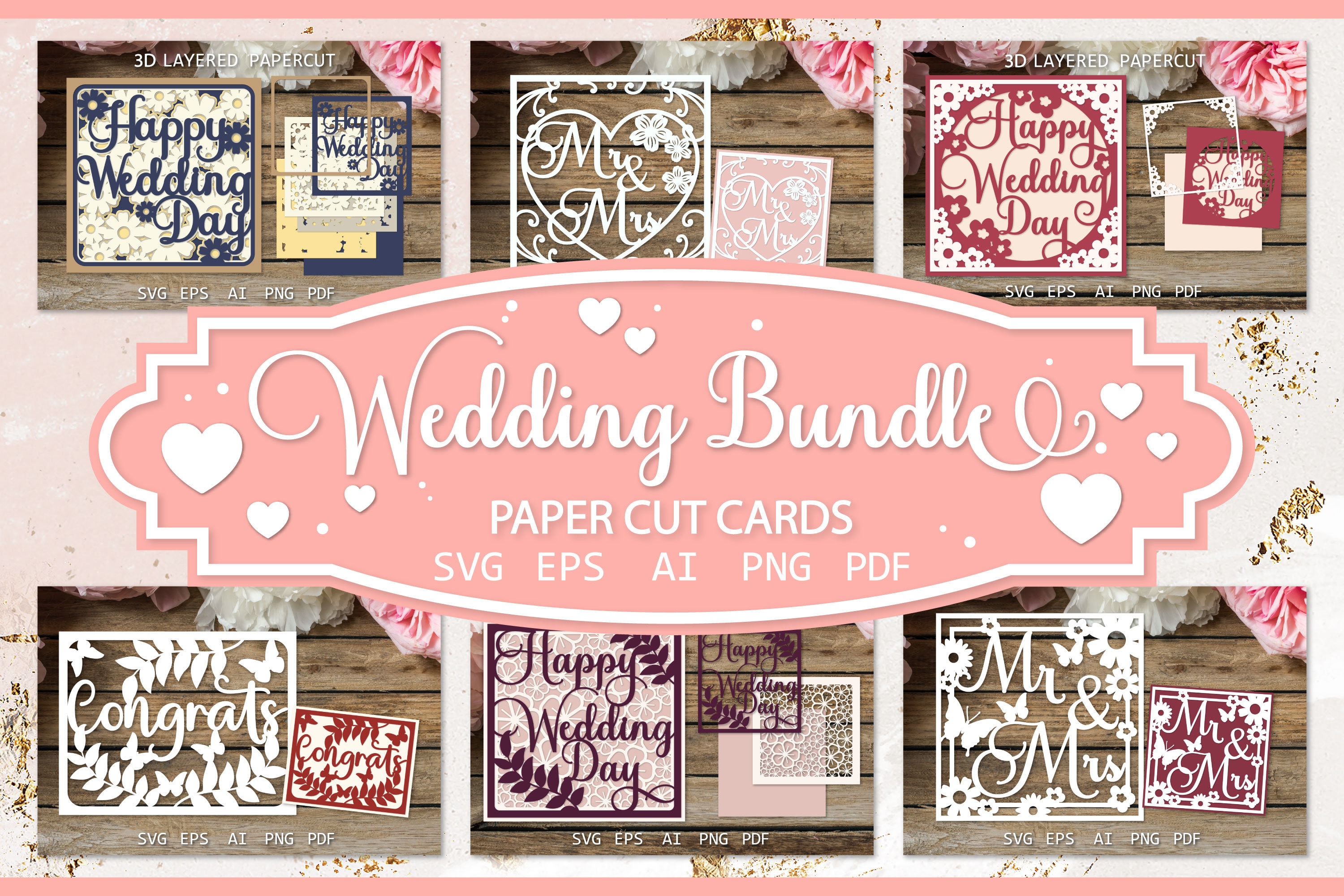 Wedding Bundle paper cutting templates, Wedding card SVG, Paper cut...