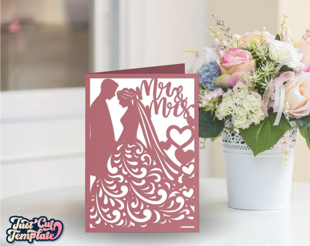 Wedding card SVG 5x7, Bride and groom Wedding fold card, Mr and Mrs...
