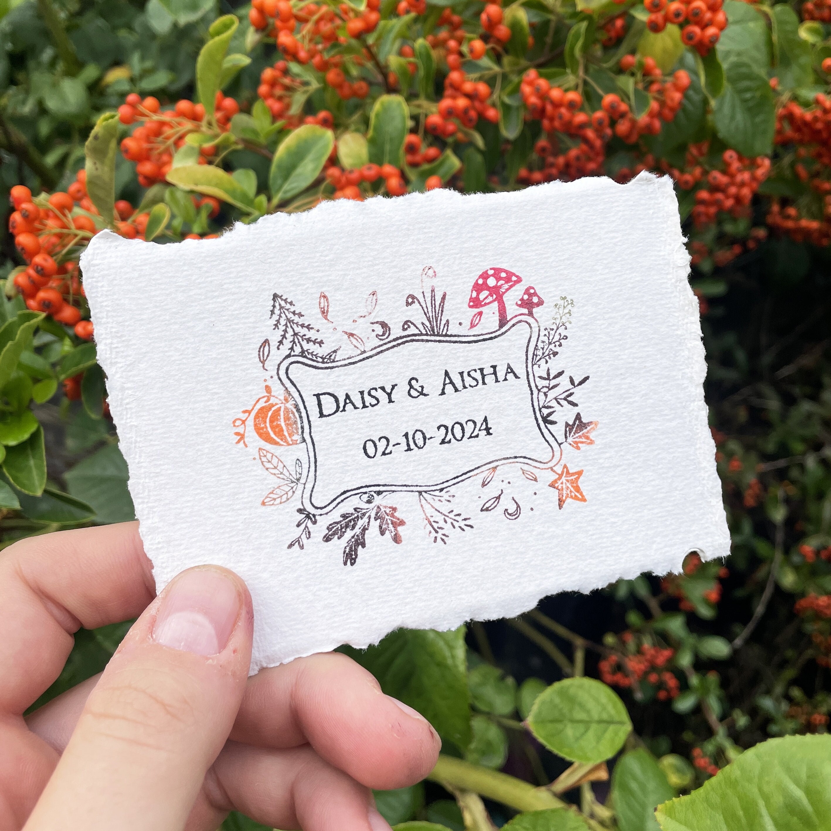 Autumn Wedding Rubber Stamp | Wedding Favour Stamp | Personalised S...