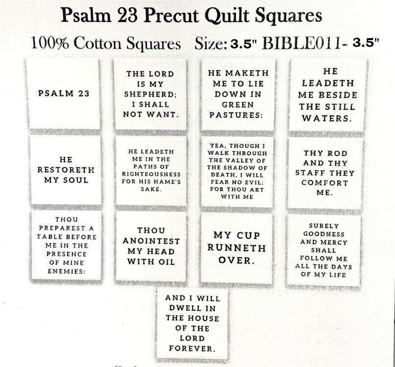 23rd Psalm BIBLE VERSE Fabric 13 - 3.5 Inch Die Cut Squares - Inspi...