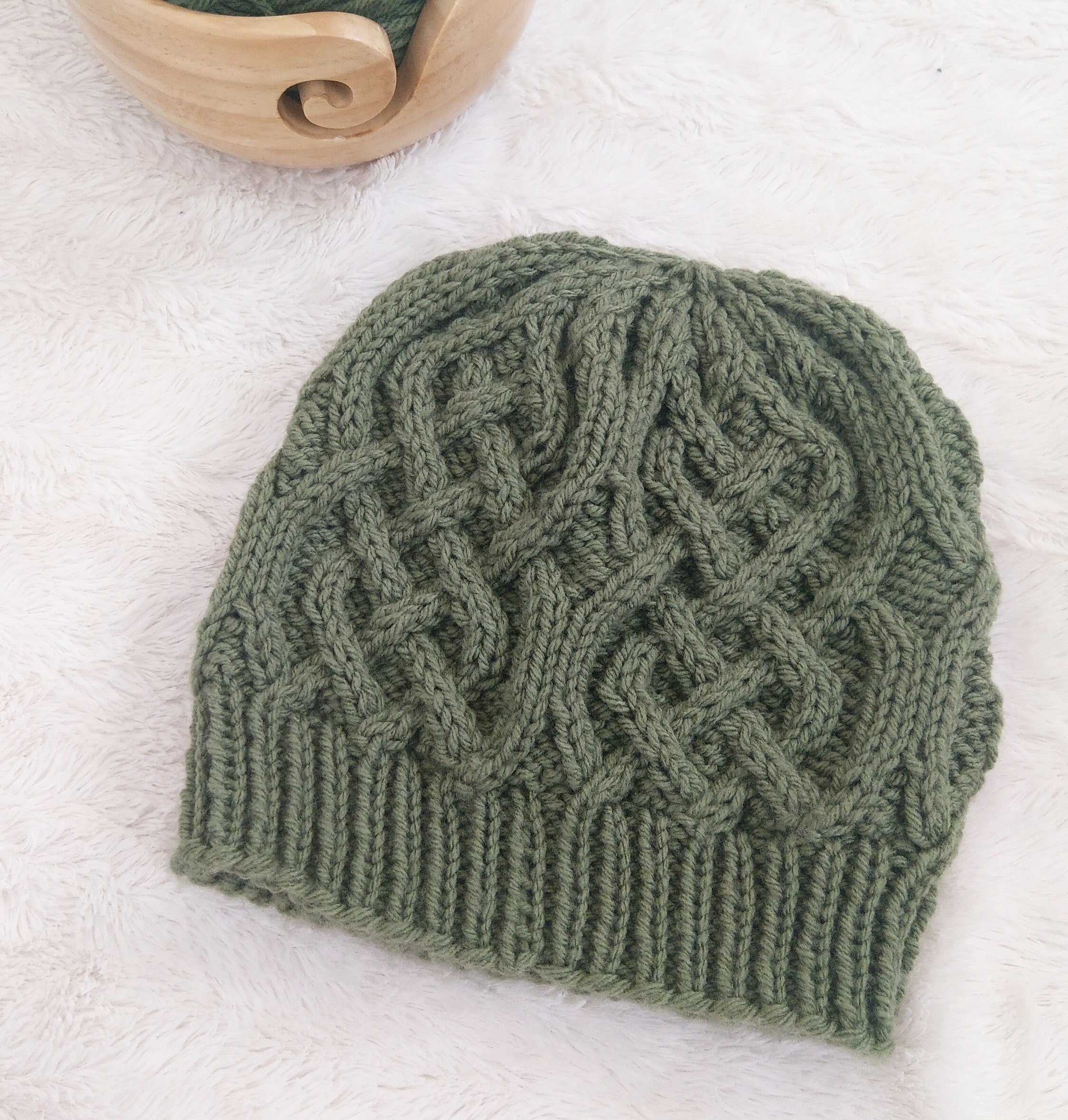 "Celtic Cable Beanie is made with worsted weight yarn and US size 6 and 8 16\" circular kn...