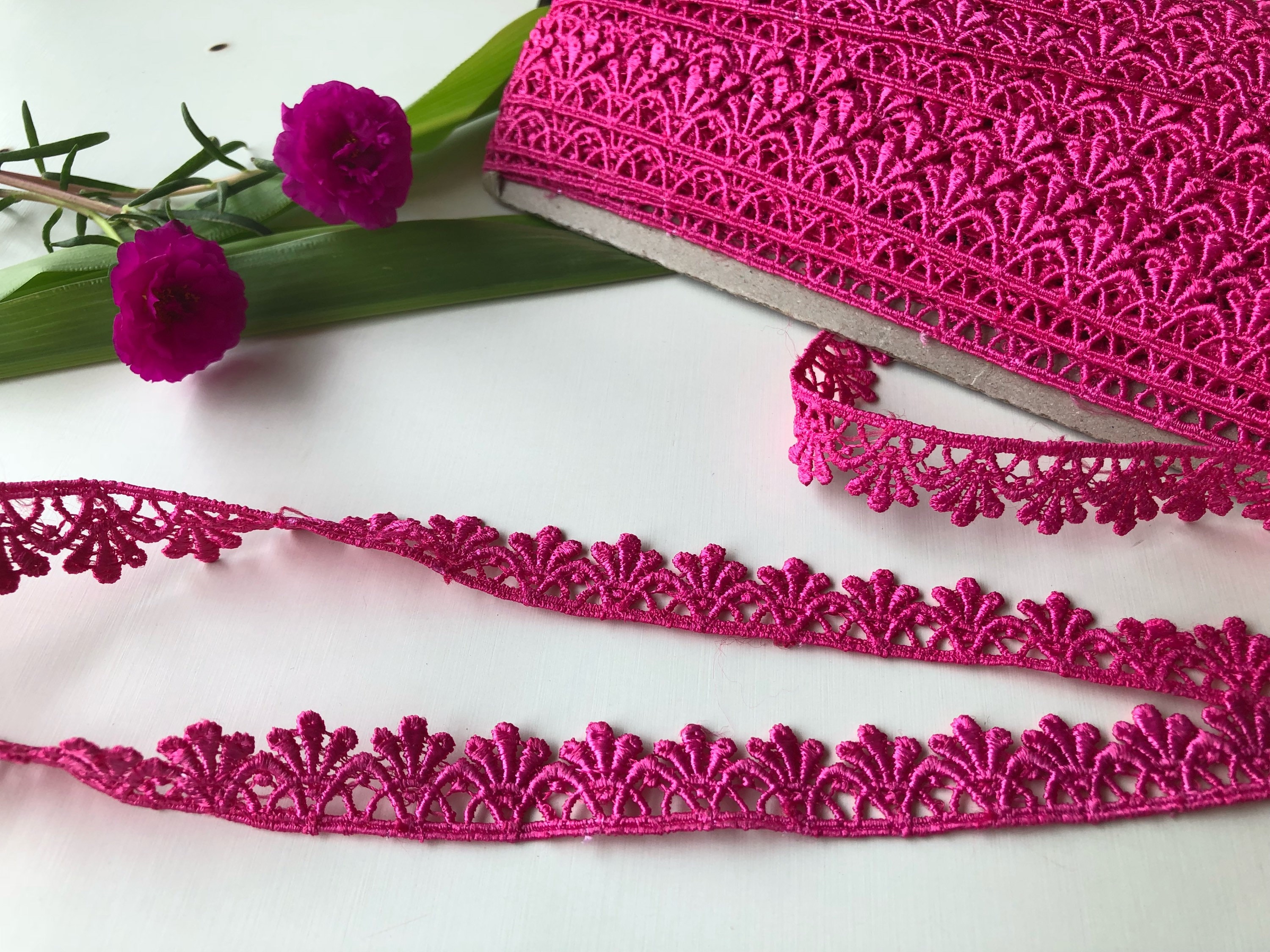 Hot Pink Lace, Fuchsia Trim, Cotton Lace Trim, 1.5 cm wide, sewing ...