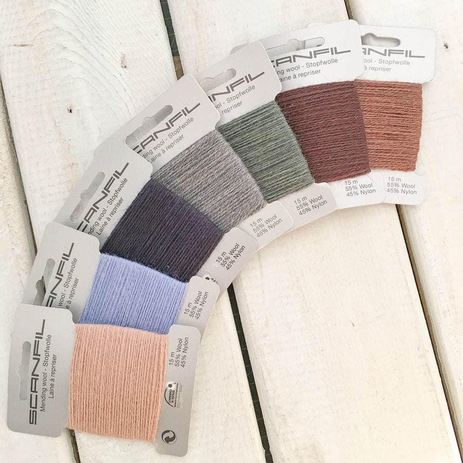 Scanfil Mending Wool 15m made of two strands. Used for mending or darning woolen garments, socks and...