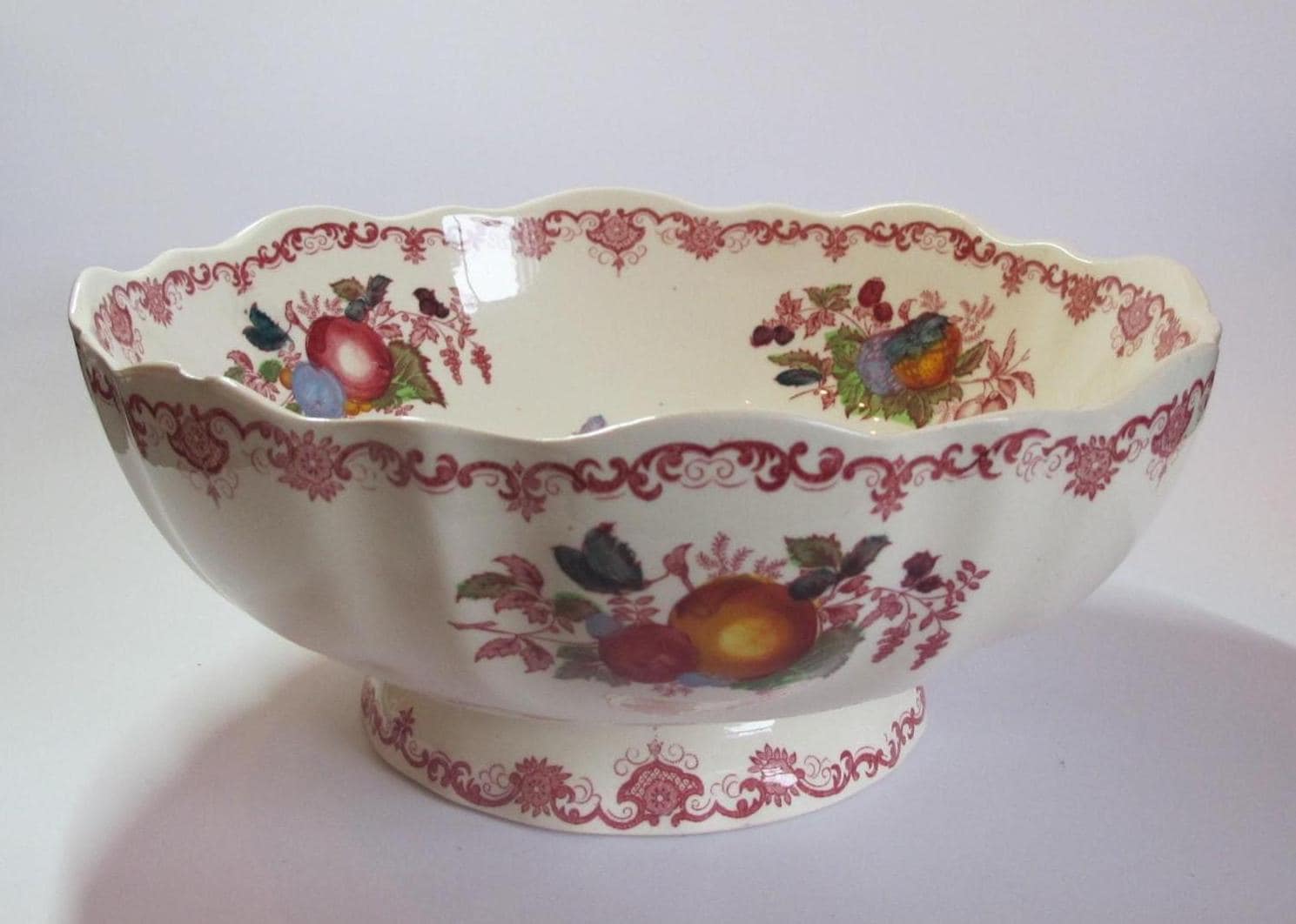 Mason's, large 10-inch pink-red fruit basket salad bowl, England ci...