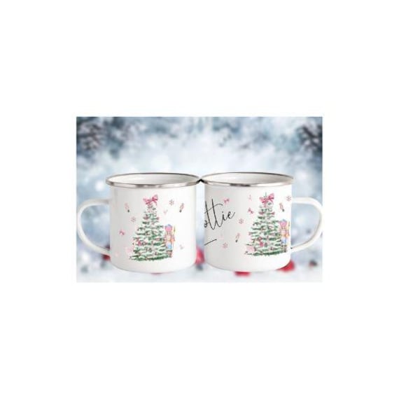 Beautiful nutcracker design enamel mug, beautiful design including nutcracker, Christmas tree, blue ...