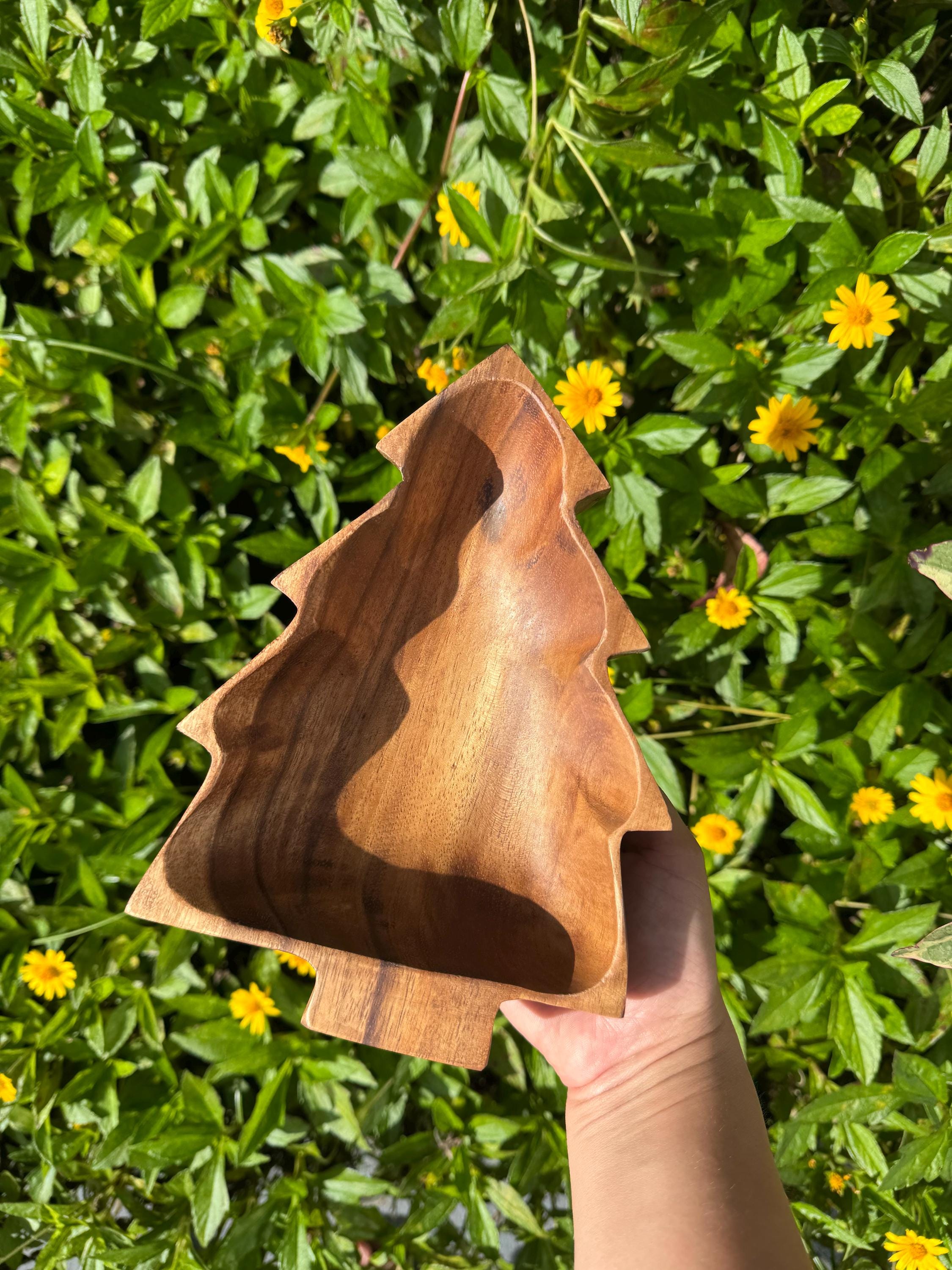 "Small 8\"x2\" Christmas Tree Acacia Wood Bowl | Chr...