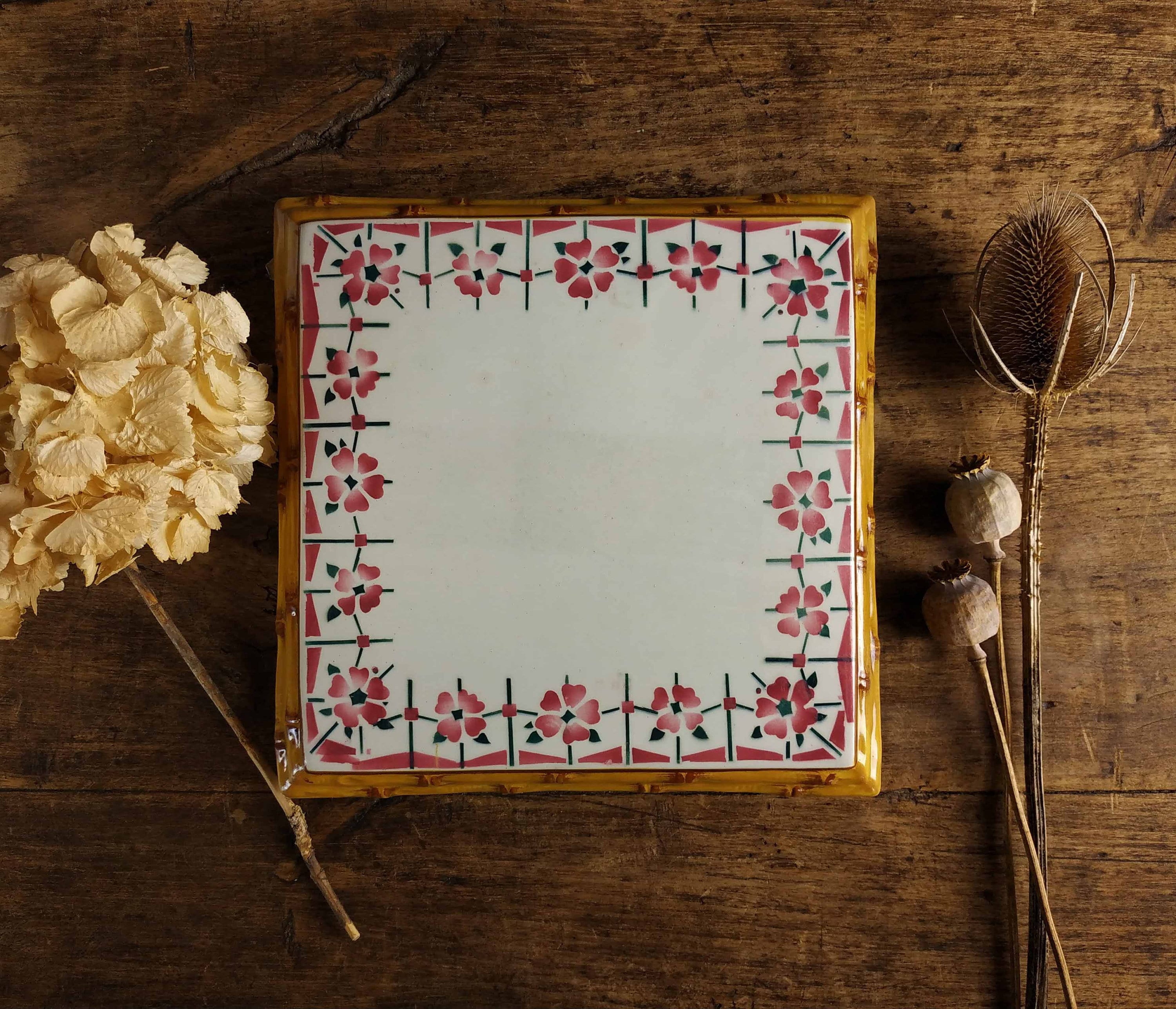 "A charming antique French ceramic trivet. This antique ceramic trivet was made by St. Amand an...