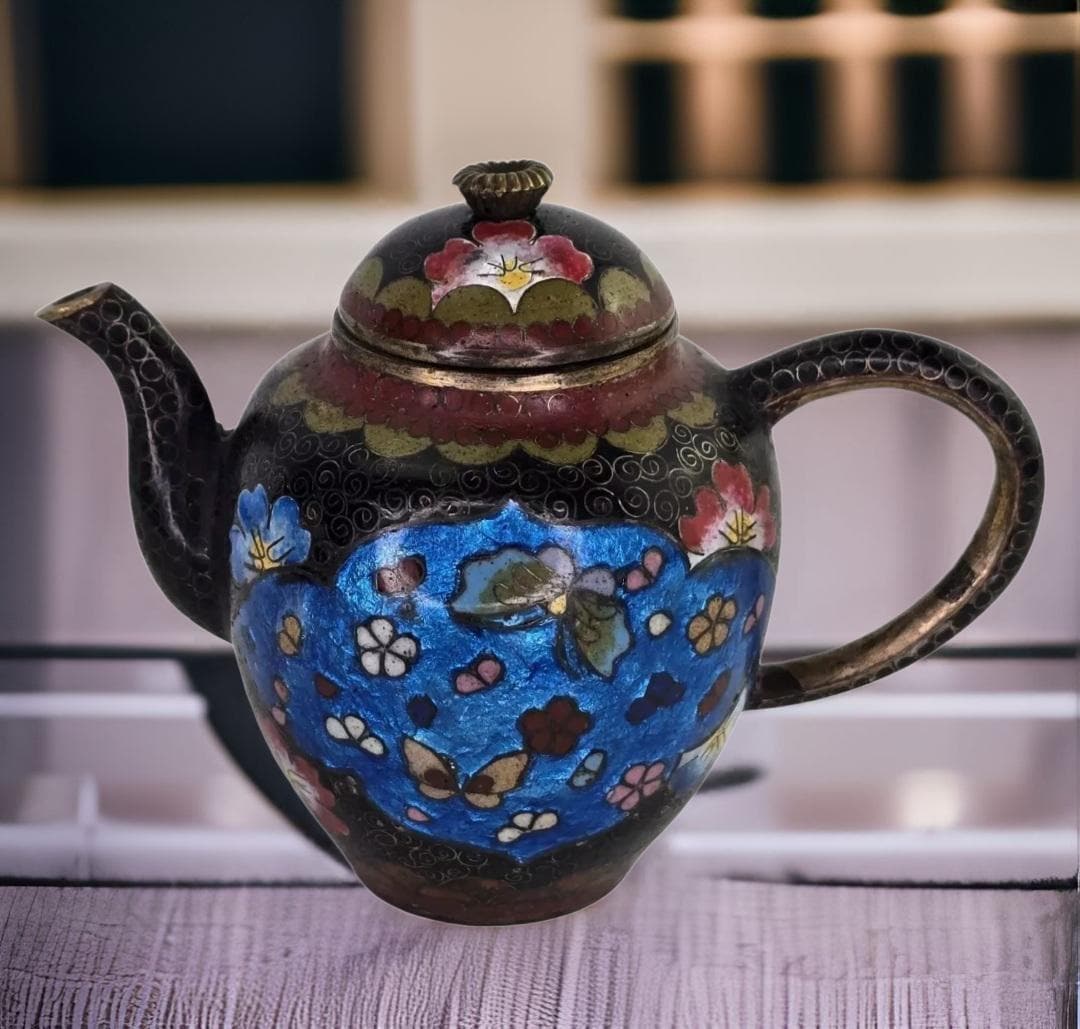 Antique Chinese cloisonné teapots, particularly those adorned with butterfly and flower motif...