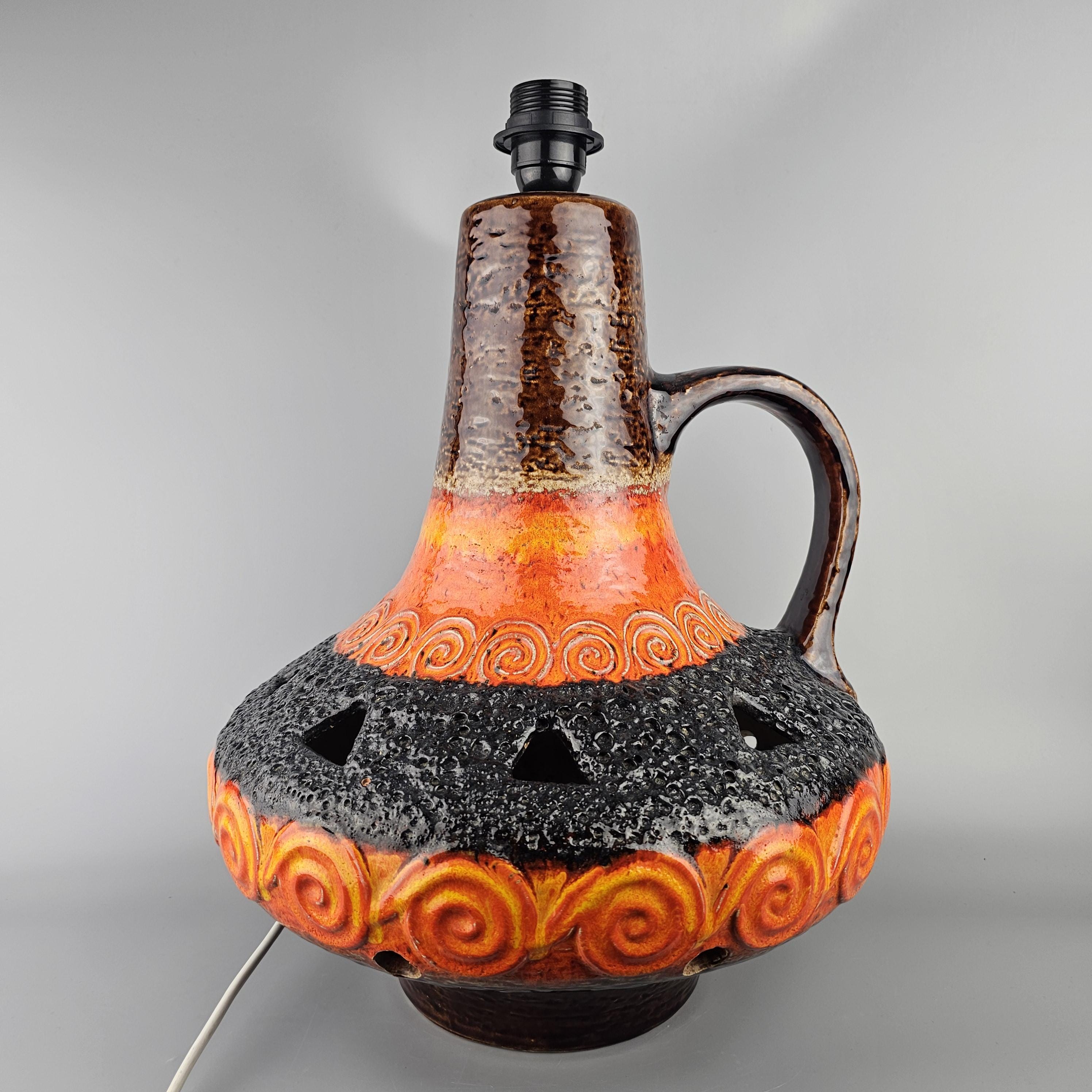 "A fantastic large orange and brown vintage fat lava table lamp base. This West Germany glazed ...