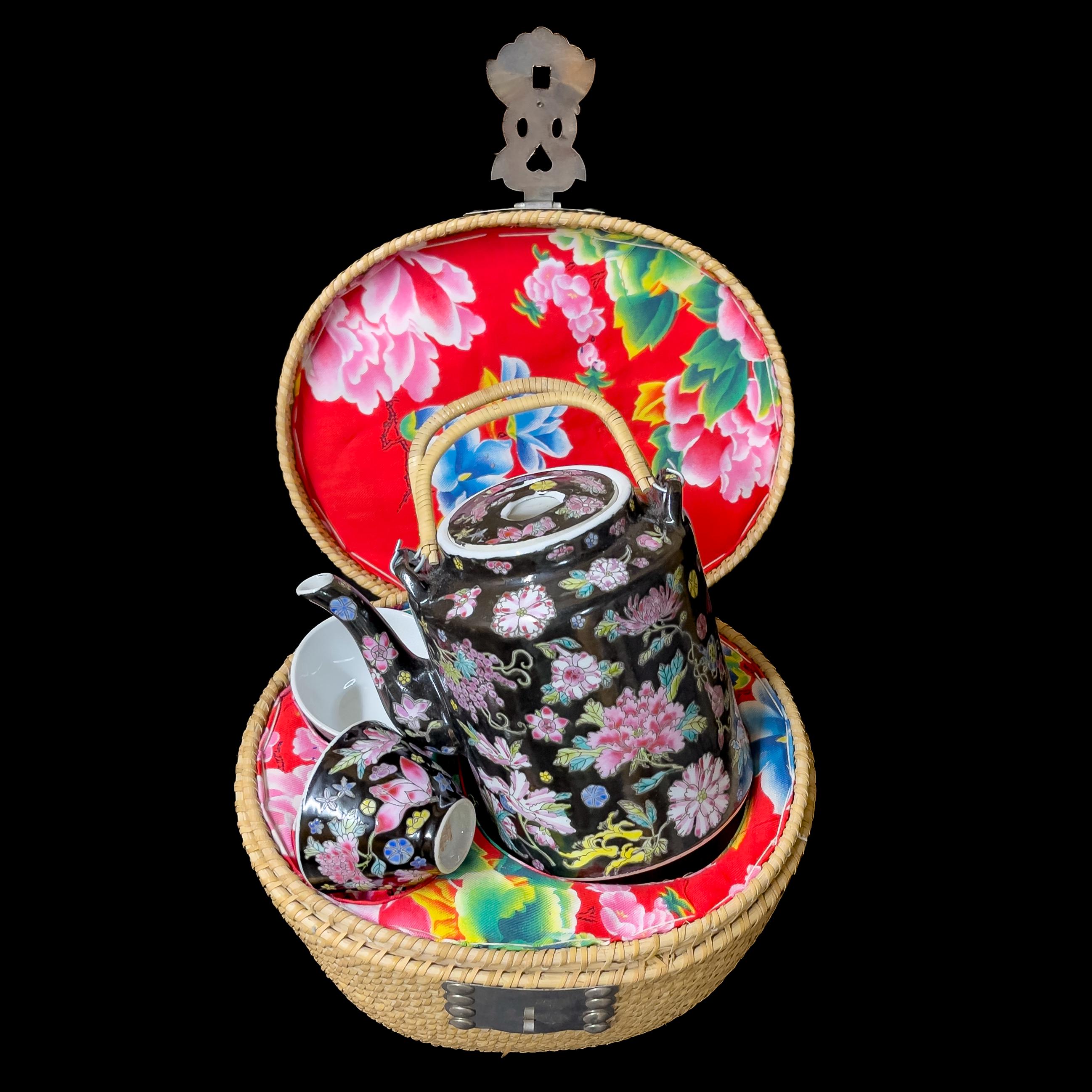 Vintage Famille Noire Porcelain Teapot Set: Thousand Flower Design,...