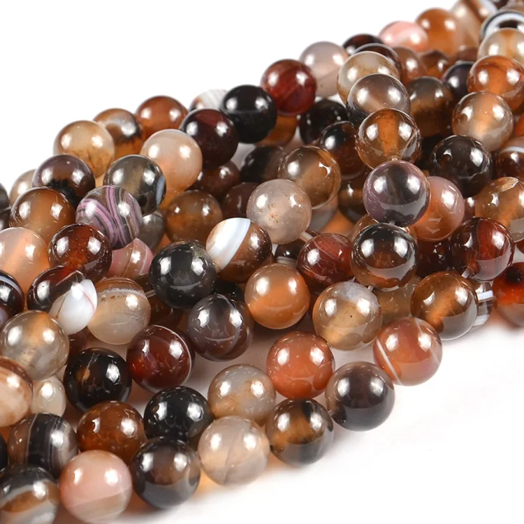 JC Natural Gemstone Bead 4MM 6MM 8MM 10MM Striped Agate Beads Coffe...