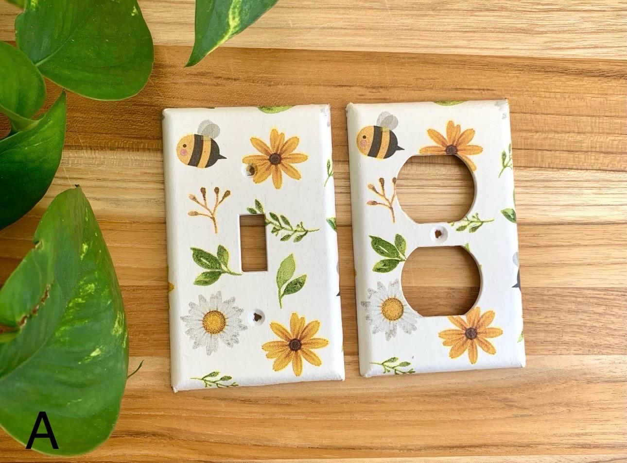 Bumblebee Bee Daisy Flower Light Switch Plate Cover Bee Home Decor ...