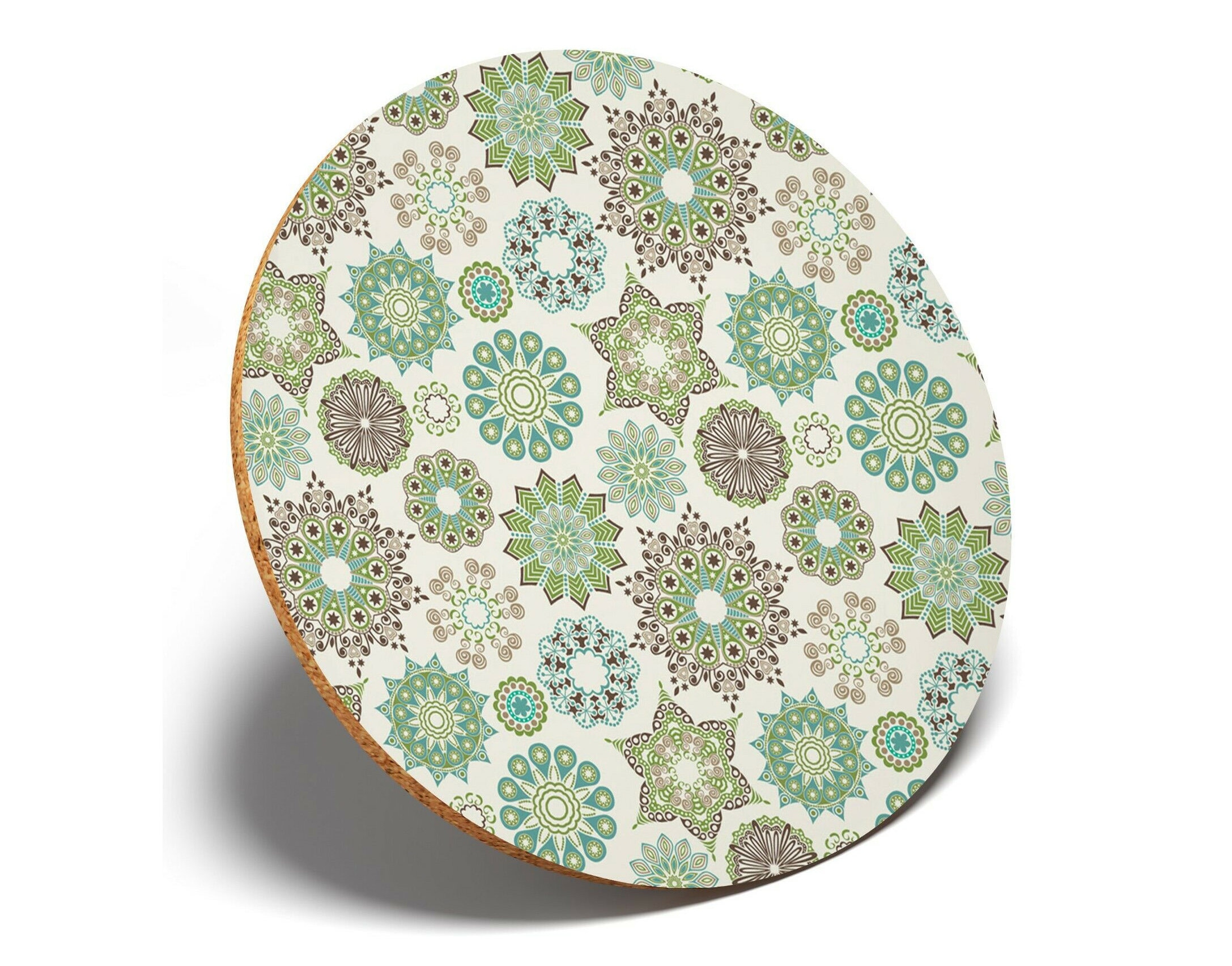 Geometric Mandala Round Coaster - Art Artistic Flowers Floral Green...