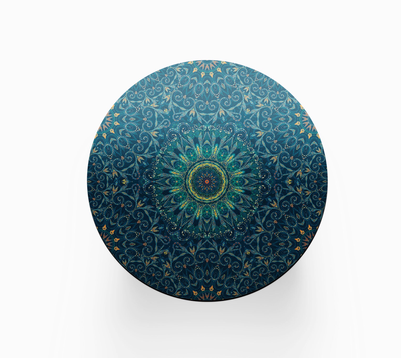 Pretty Mandala Round Coaster - Blue Green Intricate Pattern Indian ...