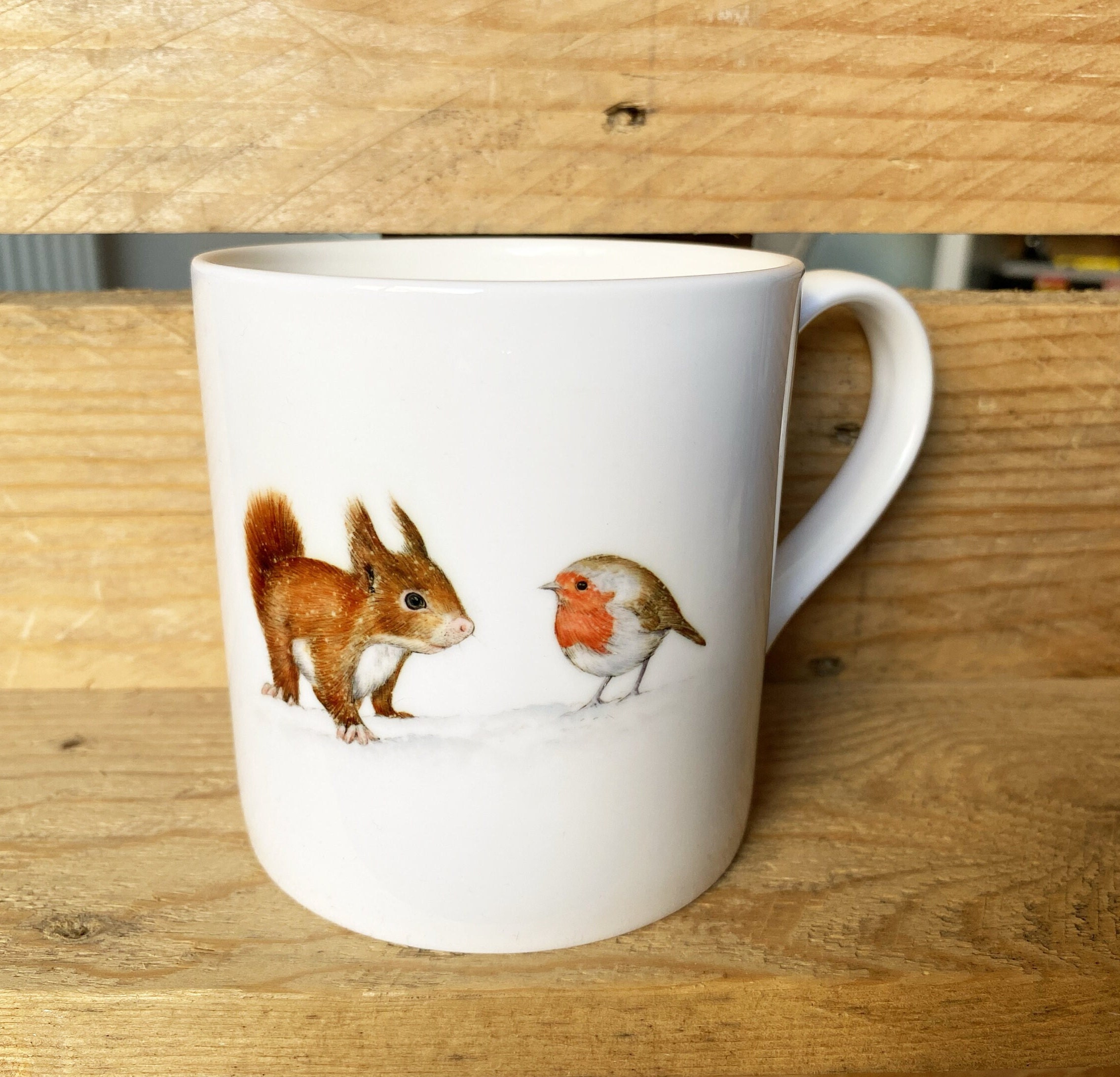 Bone China Christmas Mug, Christmas Squirrel and Robin Bone China M...