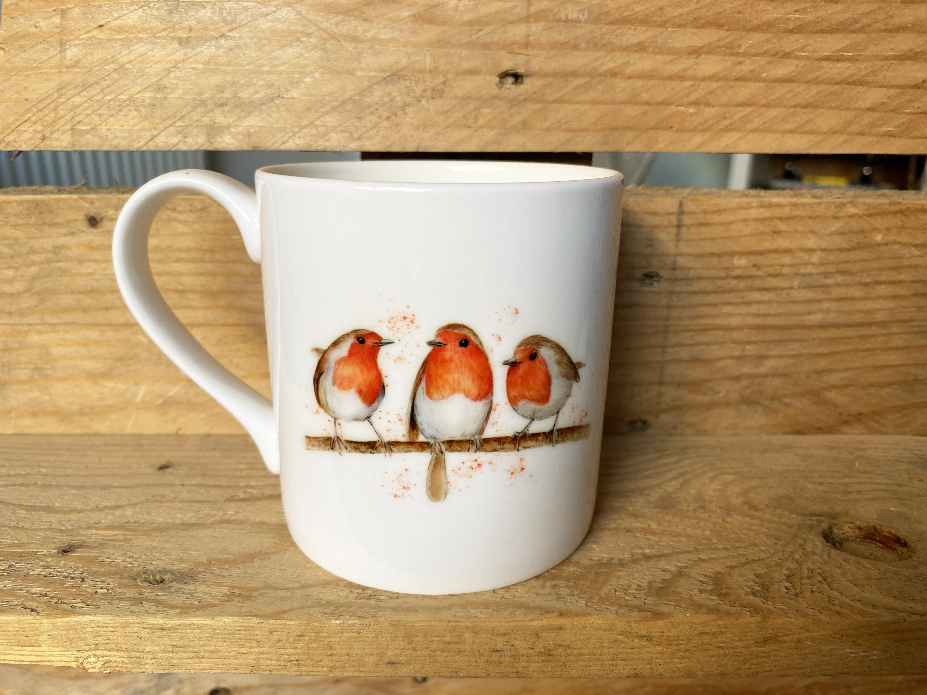 This beautiful Bone China Mug features my 3 robins illustrations on both sides. They are elegant in ...