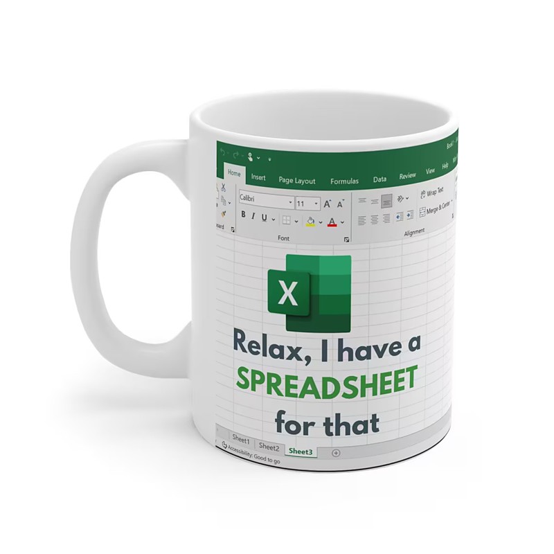 Excel Mug, Funny Office Ceramic Coffee Cup 330ml/12oz, Spreadsheet ...
