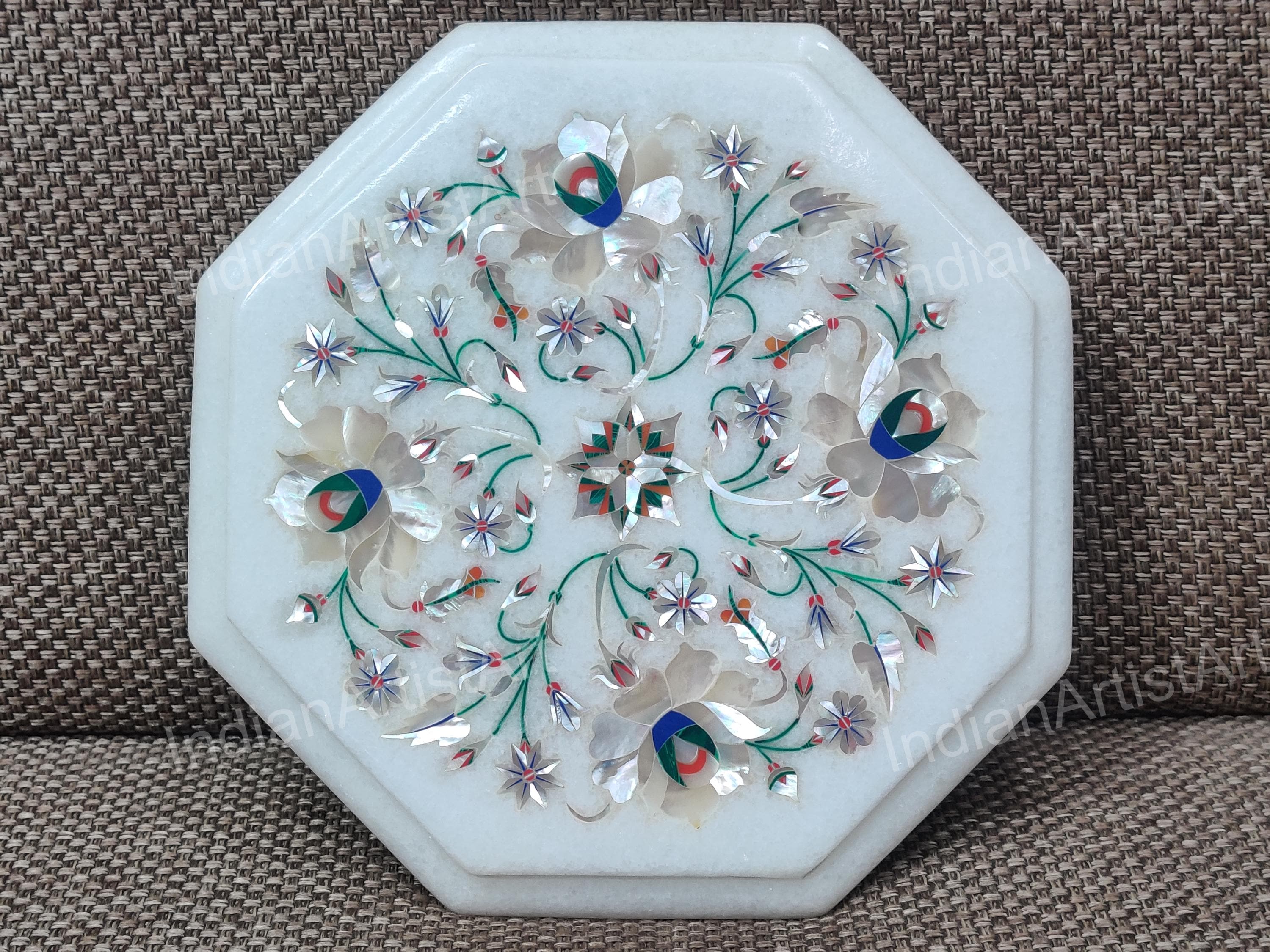 Mother of Pearl Inlay Marble Trivet: Handmade Cheese Board
