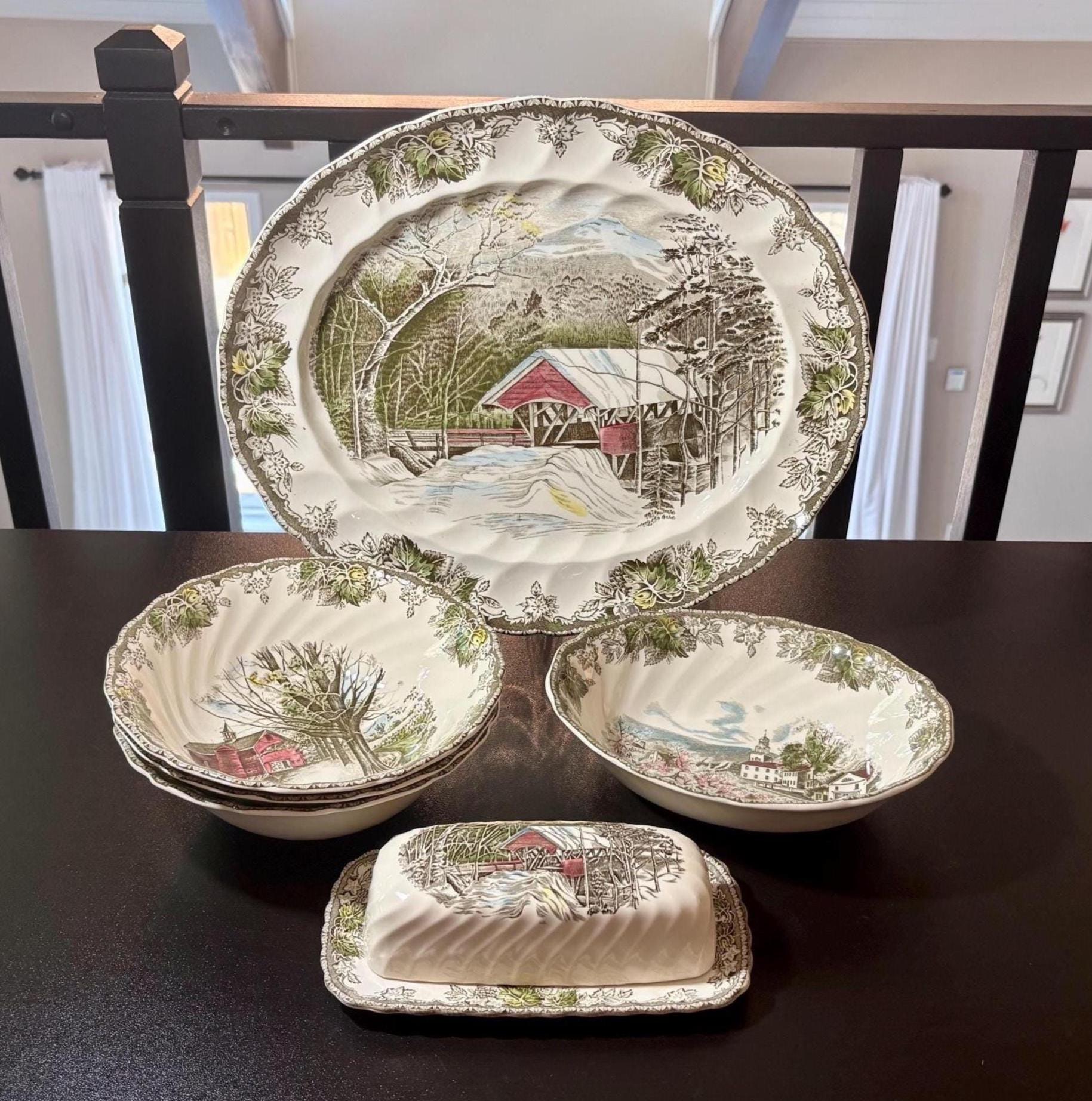 The Friendly Village by Johnson Brothers: Platter / Butter Dish / B...